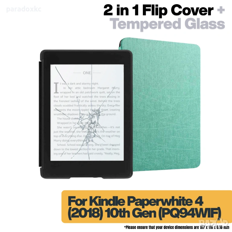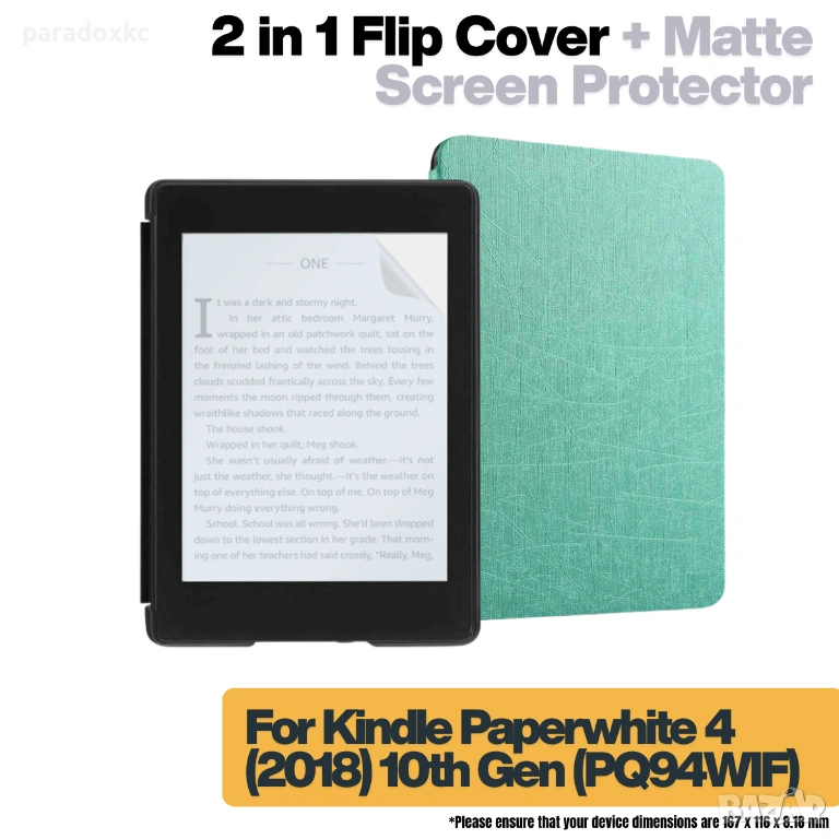 Kомплект калъф + фолио протектор или калъф + стъклен протектор за Kindle Paperwhite 2018.