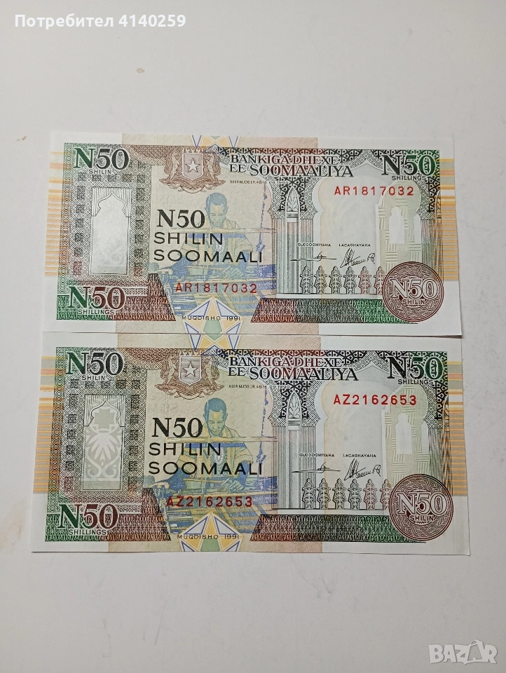 СОМАЛИЯ БАНКНОТИ 50 ШИЛИНГА 1991 Г ЦЕНА ЗА 2 БРОЯ СЪСТОЯНИЕ НОВО ПОЛУЧАВАТЕ СНИМАНИТЕ БАНКНОТИ РАЗГЛЕДАЙТЕ ДРУГИТЕ МИ ОБЯВИ ДА КОМБИНИРАТЕ ДОСТАВКА ЕКОНТ ЗА ВАРНА ЛИЧНО
