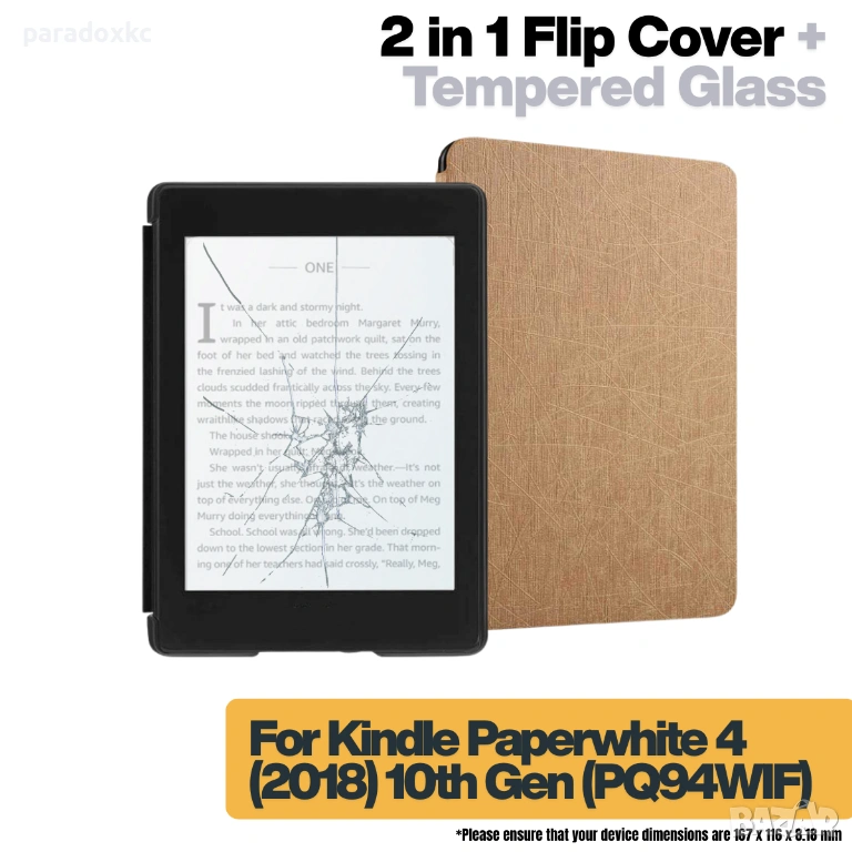 Kомплект калъф + фолио протектор или калъф + стъклен протектор за Kindle Paperwhite 2018.
