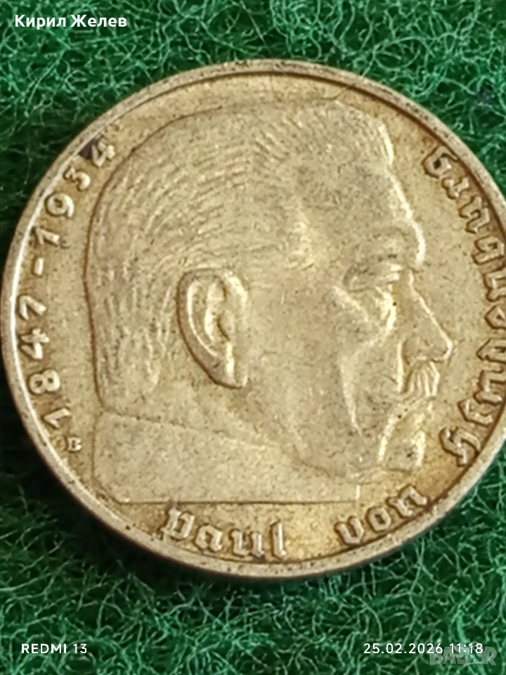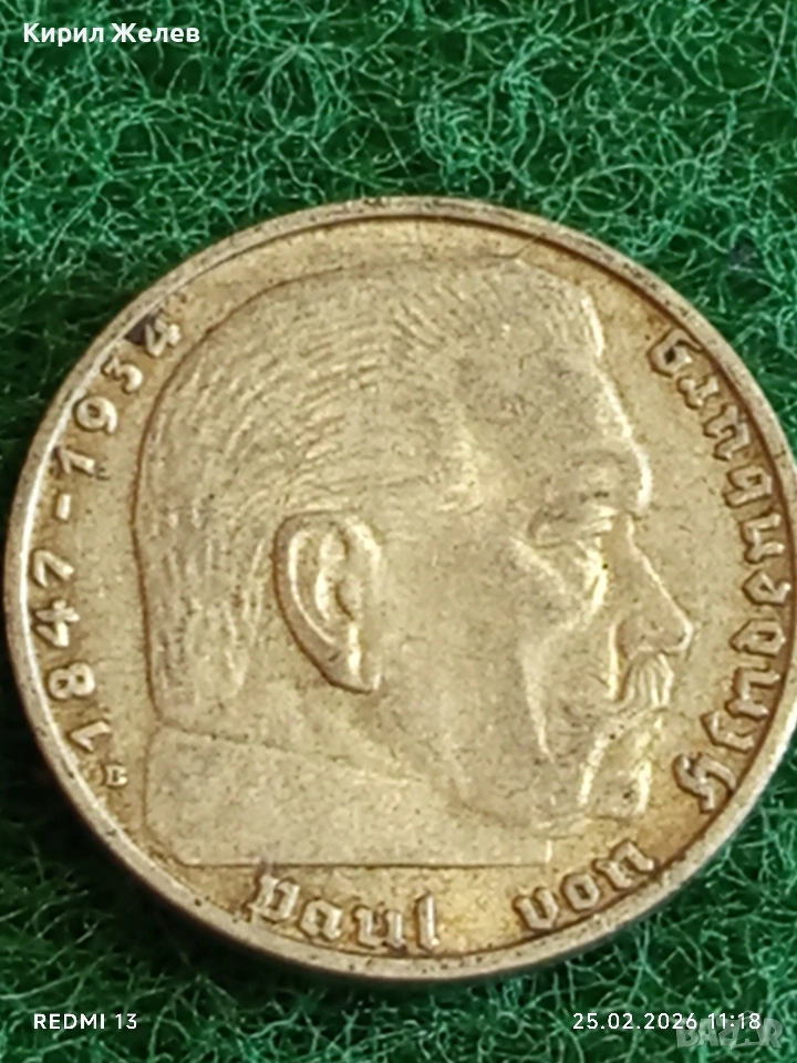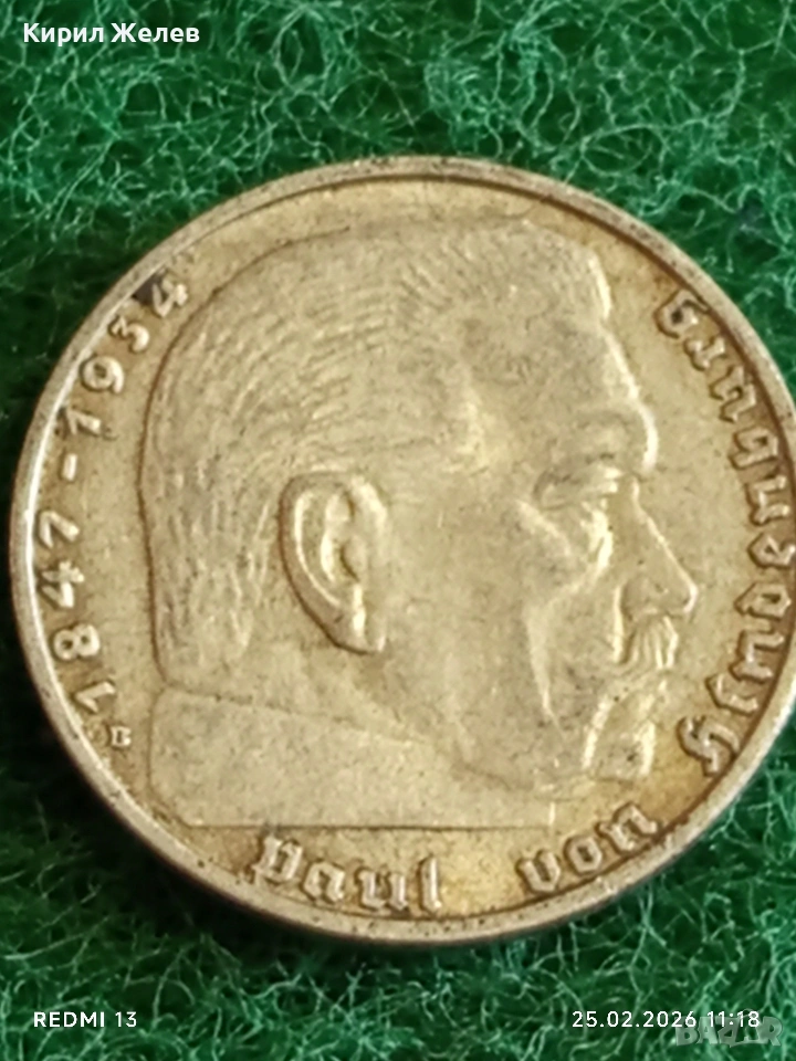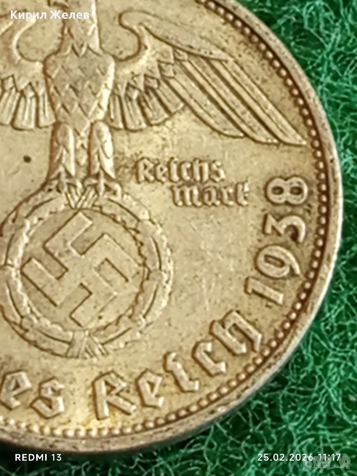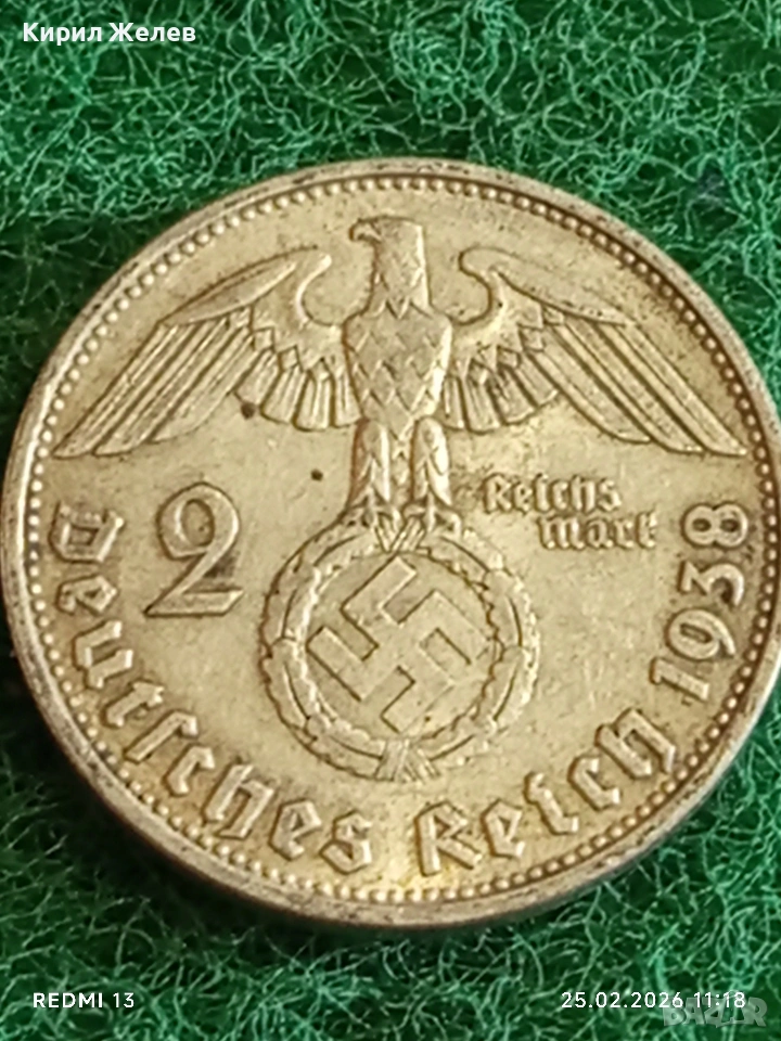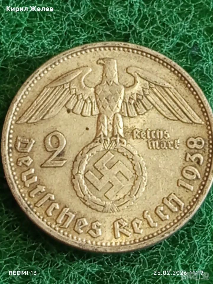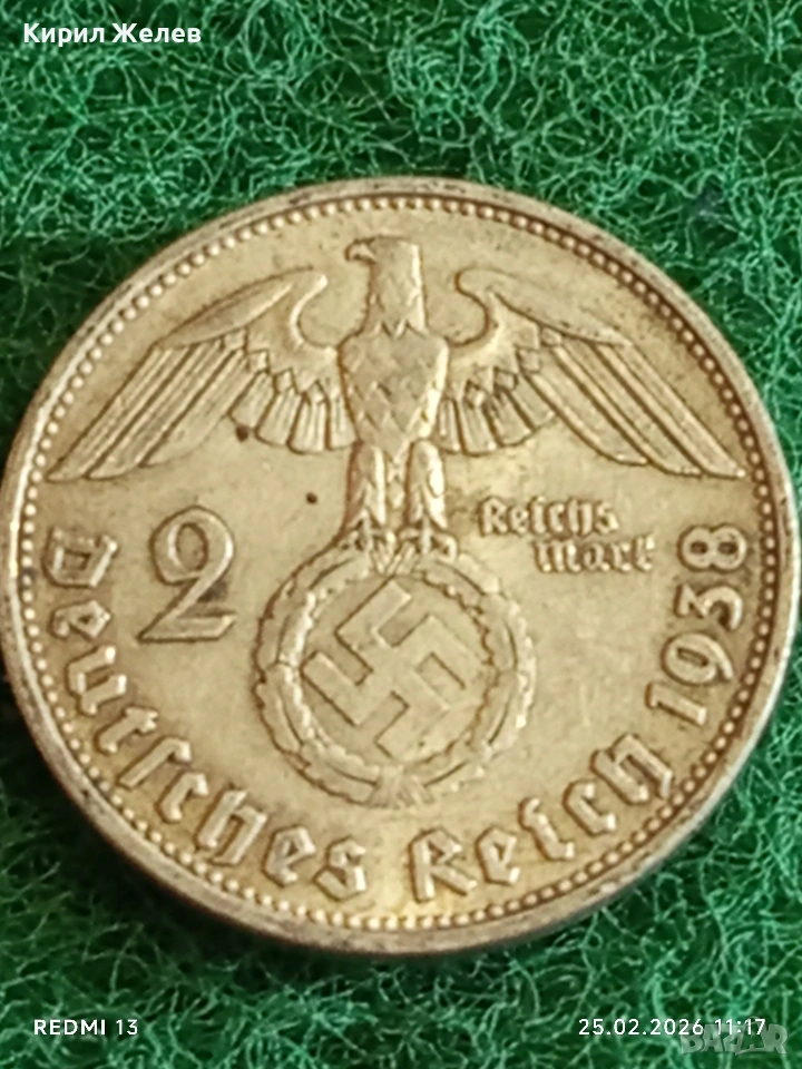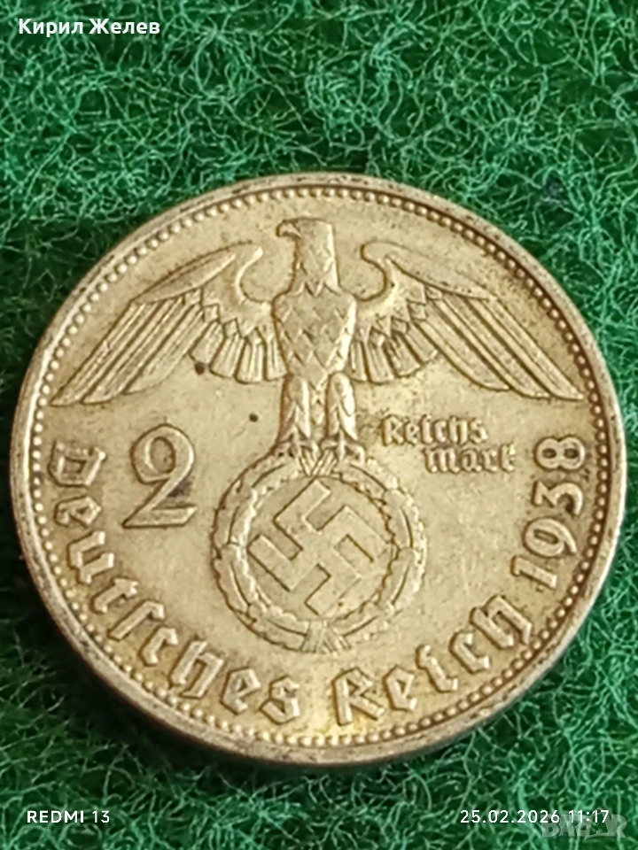 Сребърна монета 2 райхсмарки 1938г. Германия Трети Райх с Свастика за КОЛЕКЦИОНЕРИ 50058 → Обява 53615708