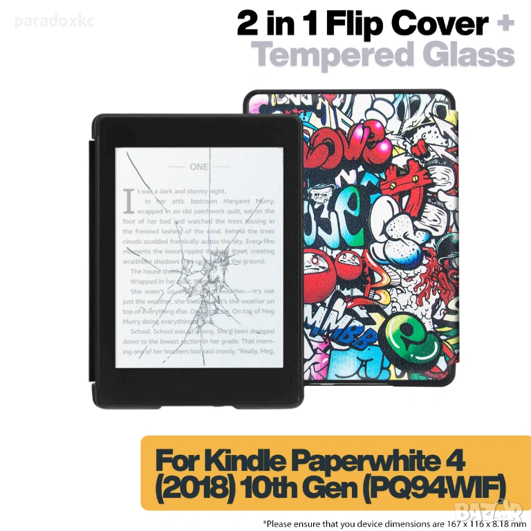 Калъф + протектор за Kindle Paperwhite 2018 (10th Gen) - Graffiti