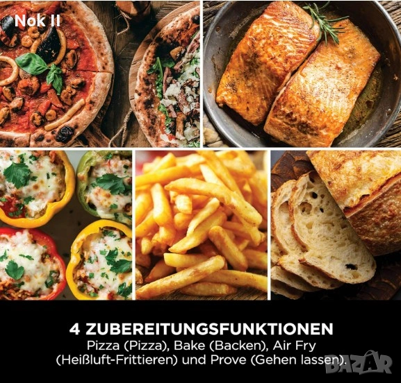 ВКЛЮЧВА: Включва камък за пица 30 см, тава за печене (30 x 30 см), перфорирана купа за пица, кошница за фритюрник с горещ въздух и кратко ръководство с рецепти. Размери: В: 32 см x Д: 59 см x Ш: 42 см. Тегло: 11,9 кг. Цвят: сив