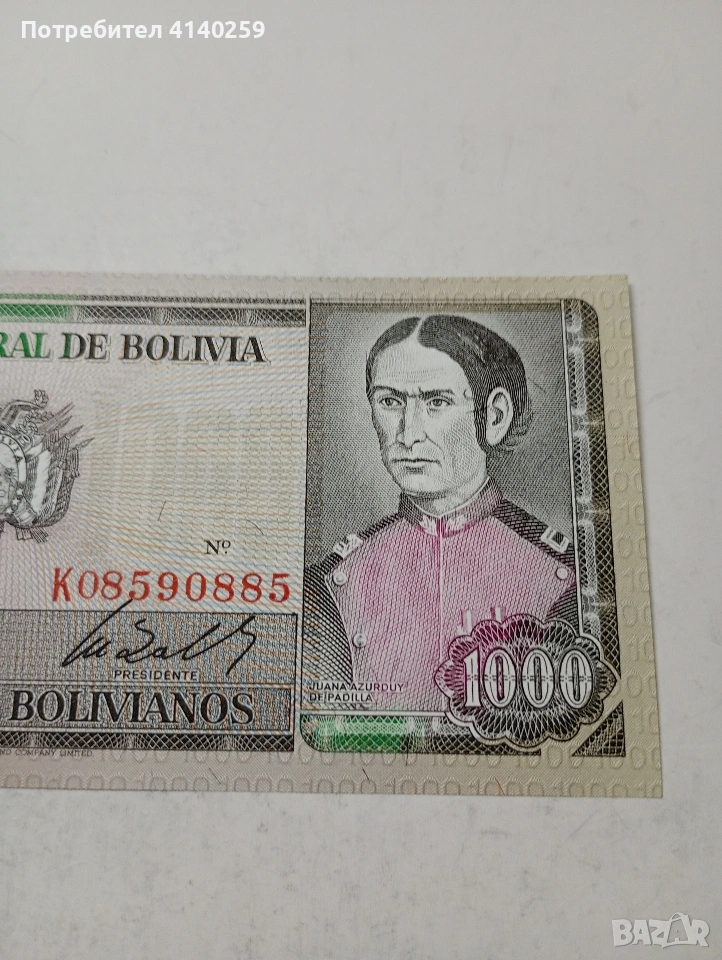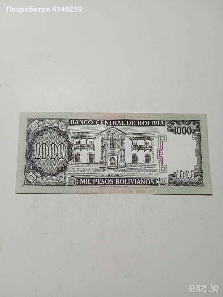 БОЛИВИЯ БАНКНОТА 1000 ПЕСОС 1992 Г СЪСТОЯНИЕ НОВО ПОЛУЧАВАТЕ СНИМАНАТА БАНКНОТА РАЗГЛЕДАЙТЕ ДРУГИТЕ МИ ОБЯВИ ДА КОМБИНИРАТЕ ДОСТАВКА ЕКОНТ ЗА ВАРНА ЛИЧНО