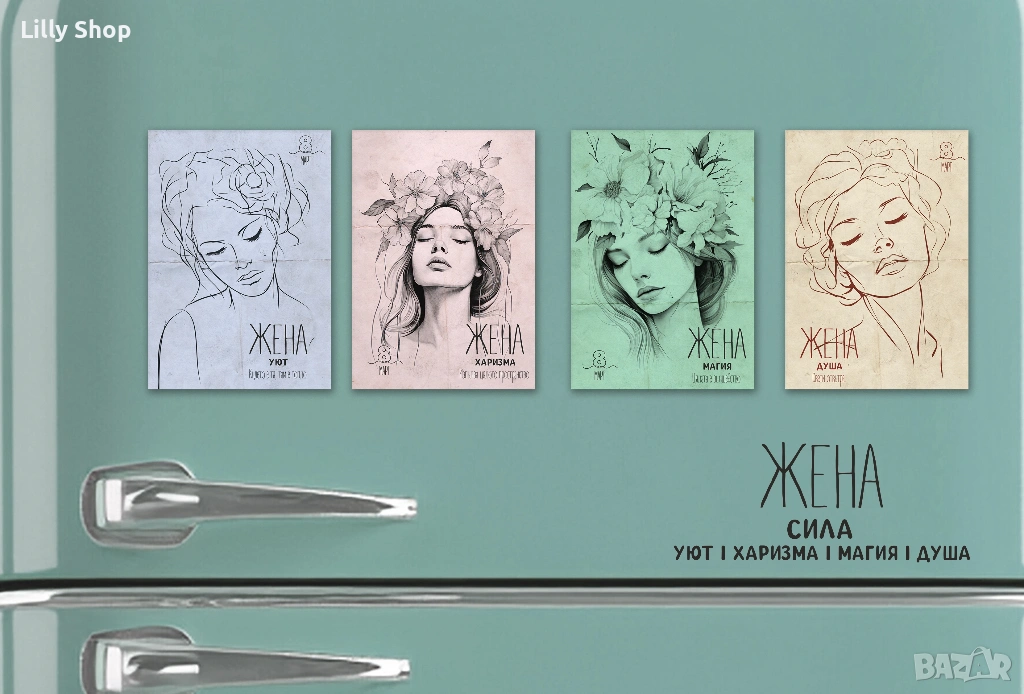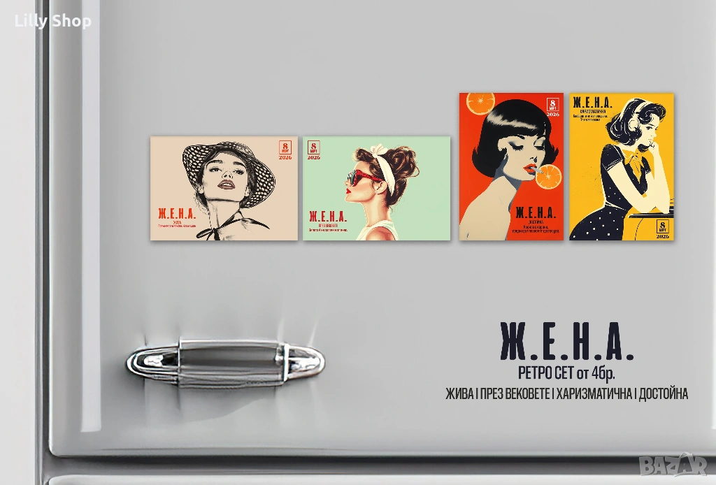 2. Ж.Е.Н.А. I RETRO сет от 4 магнитчета, за любимите приятелки.