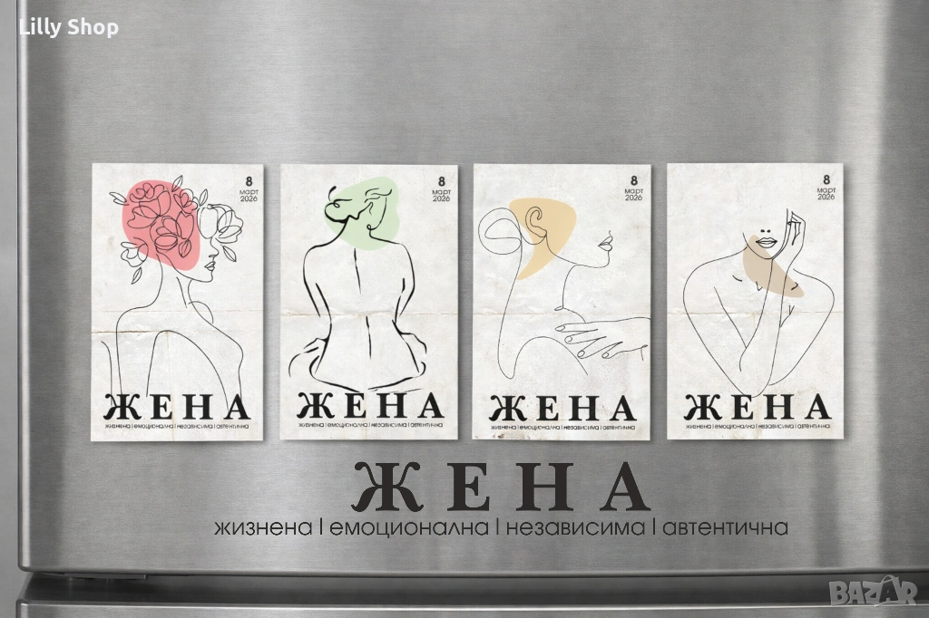 5. Ж.Е.Н.А жизнена I емоционална I независима I автентична сет от 4 магнитчета, за истинските жени
