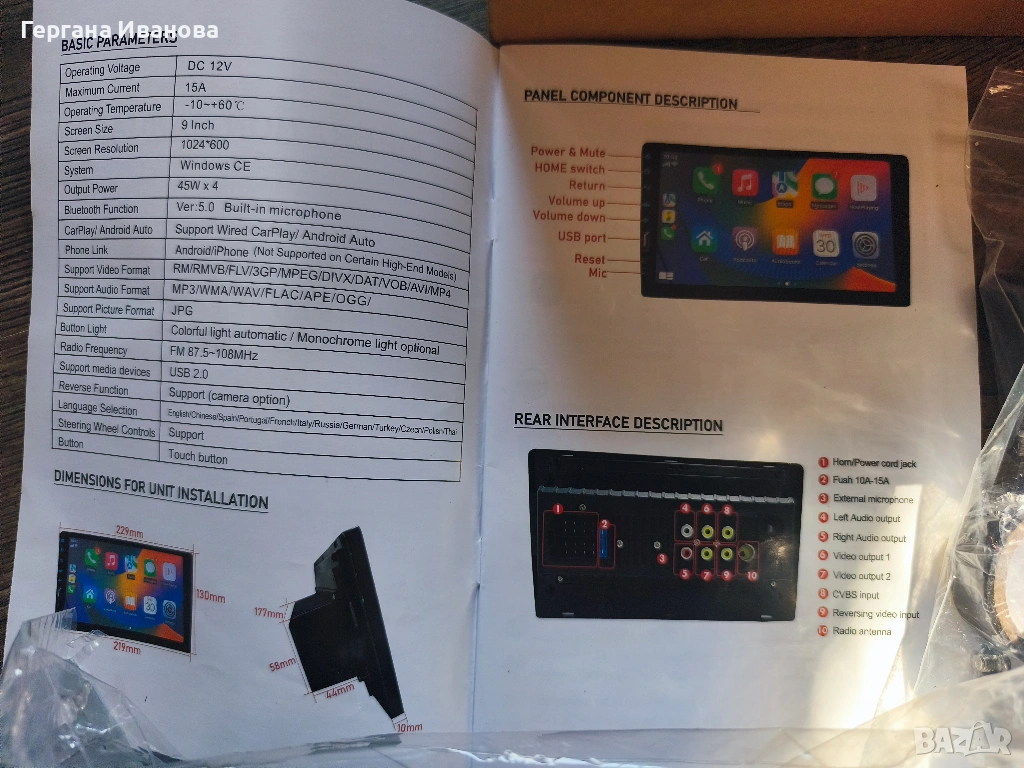 Дисплей: 9-инчов капацитивен сензорен екран с резолюция 1024×600.