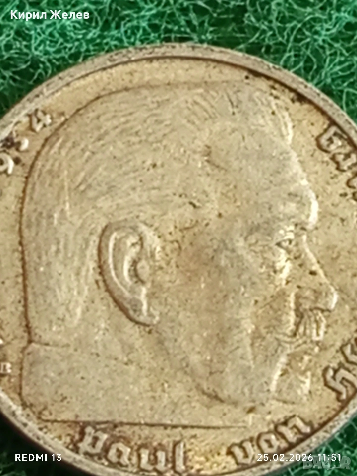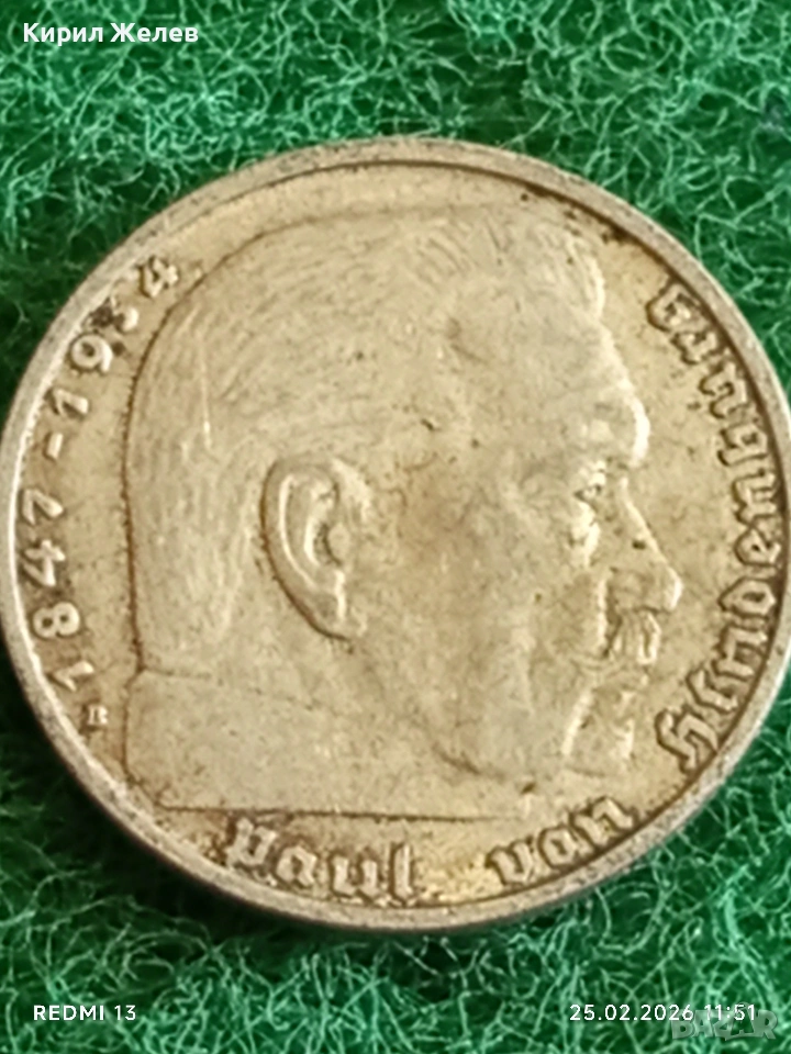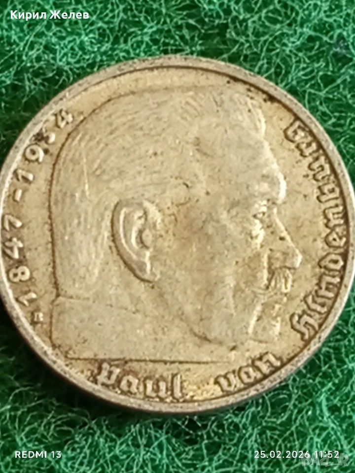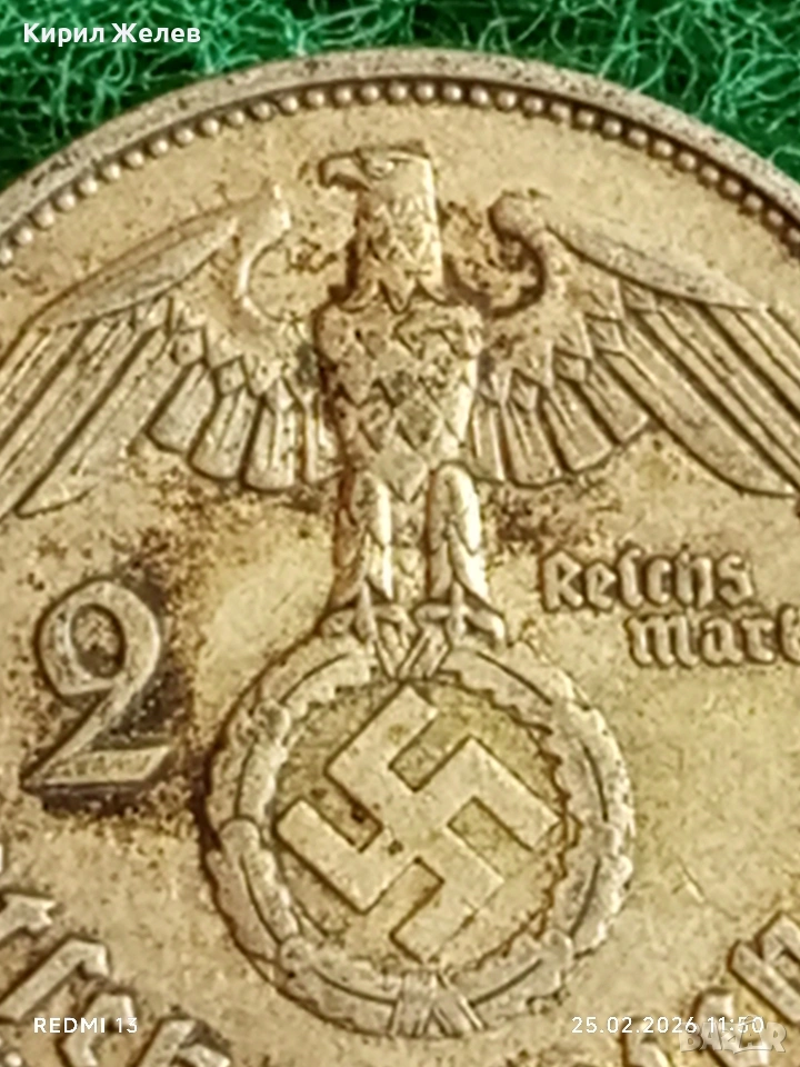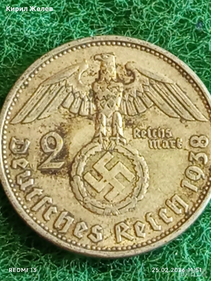 Сребърна монета 2 райхсмарки 1939г. Германия Трети Райх с Свастика за КОЛЕКЦИОНЕРИ 51810 → Обява 53616168