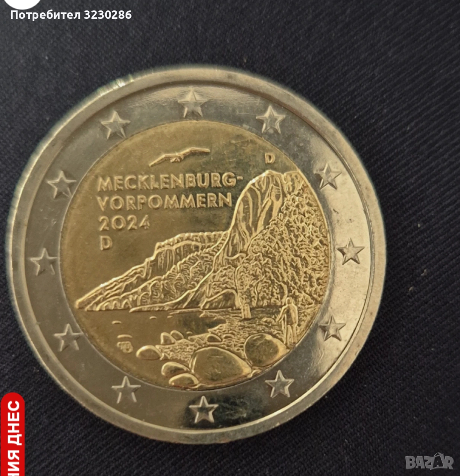 Лице: В центъра на лицевата страна на монетата е изобразена тебеширена скала на остров Рюген – "Königsstuhl“ от националния парк Ясмунд. Името на тази земя "MECKLENBURG-VORPOMMERN", годината на емитиране на монетата "2024“ и буквата "D“, обозначаваща страната, са гравирани отгоре. От дясната страна са изобразени знакът на монетния двор и инициалите на автора на дизайна на монетата. На външния пръстен на монетата са изобразени дванадесетте звезди на Европейския съюз.