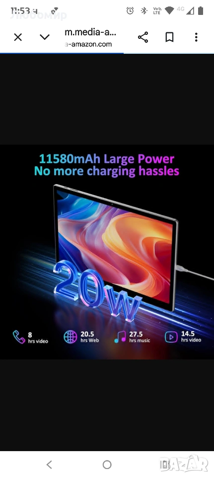 🔋11580mAh Масивна батерия + 20W Бързо Зареждане🔋Захранван от операционната система Android 15 с 2.0GHz осемядрен процесор, 14-инчовият таблет BEYNIVAN разполага с масивна батерия от 11580mAh, която предлага до 780 часа в режим на готовност, 12 часа игри и 16 часа видео разговори. Благодарение на технологията за бързо зареждане от 20W, можете да презаредите батерията за кратко време, оставайки с вас за работа или забавление през целия ден.