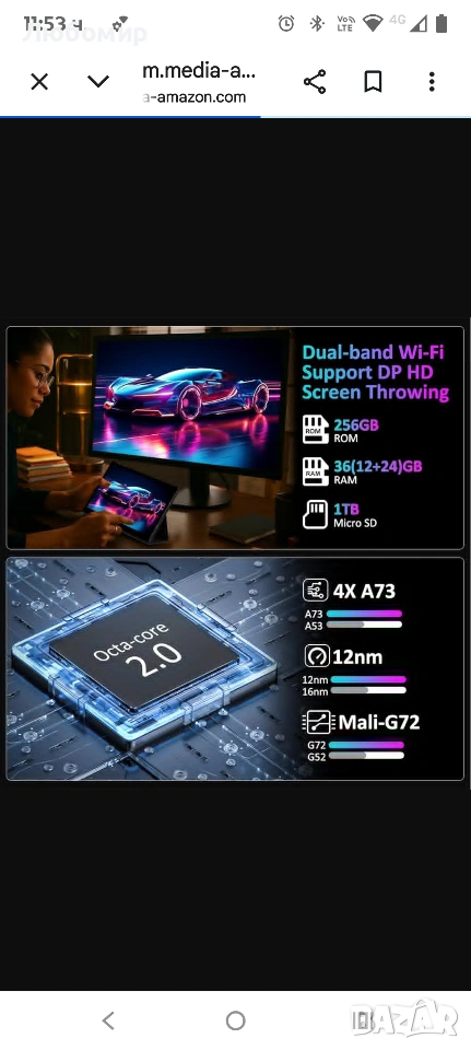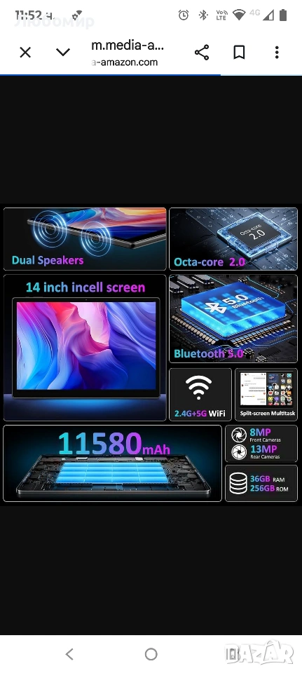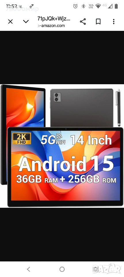 14-инчов таблет 5G WiFi, Android 15 таблет 36GB RAM+256GB ROM, 20W/11580mAh, 2000 * 1200