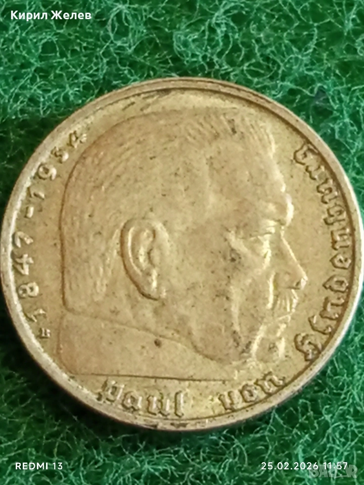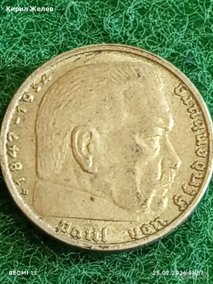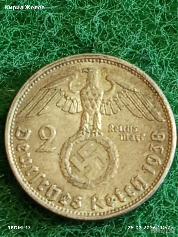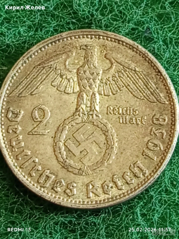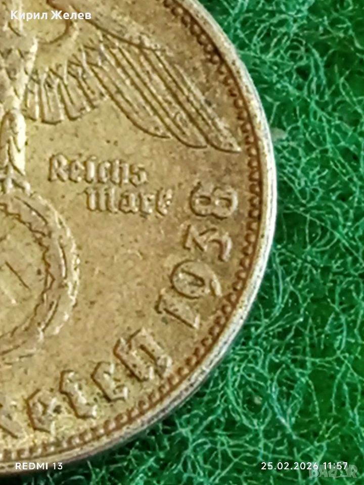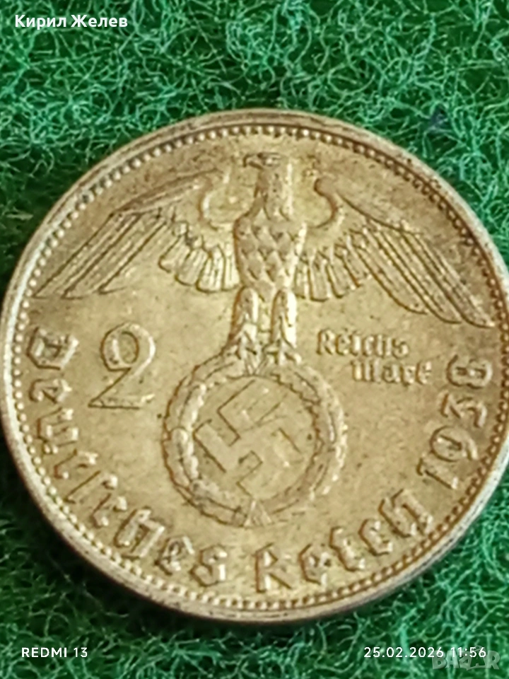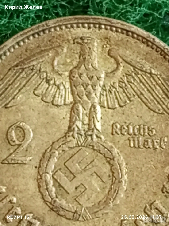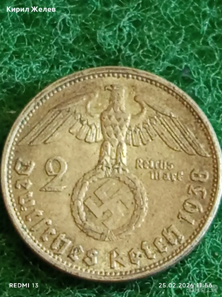 Сребърна монета 2 райхсмарки 1938г. Германия Трети Райх с Свастика за КОЛЕКЦИОНЕРИ 53073 → Обява 53616251