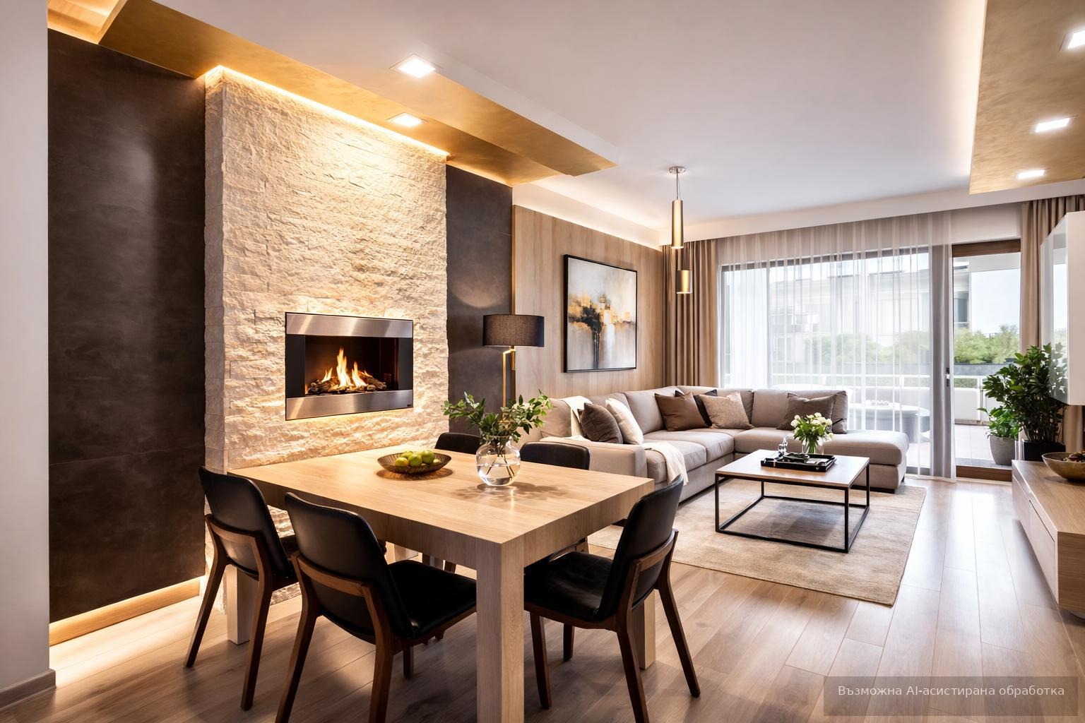 Имотът е ситуиран на 8-ми жилищен етаж и разполага с площ 100кв.м, разгърната в следното разпределение: входно антре, хол с кухненски бокс и трапезария, две спални, баня с тоалетна и тераса.