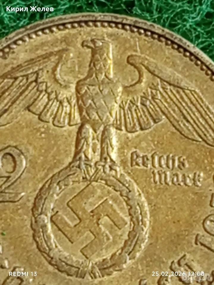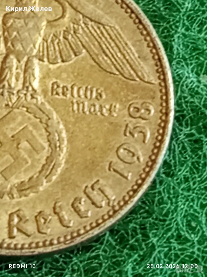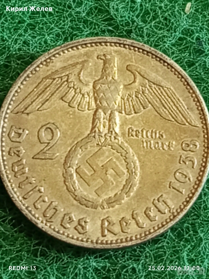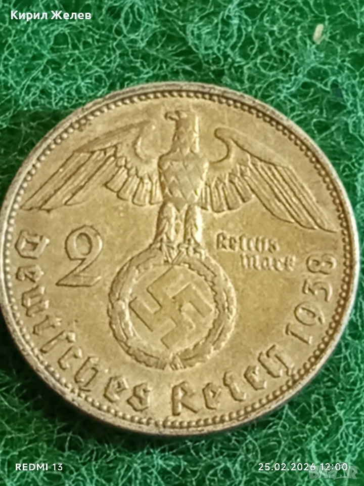 Сребърна монета 2 райхсмарки 1938г. Германия Трети Райх с Свастика за КОЛЕКЦИОНЕРИ 51266 → Обява 53616326