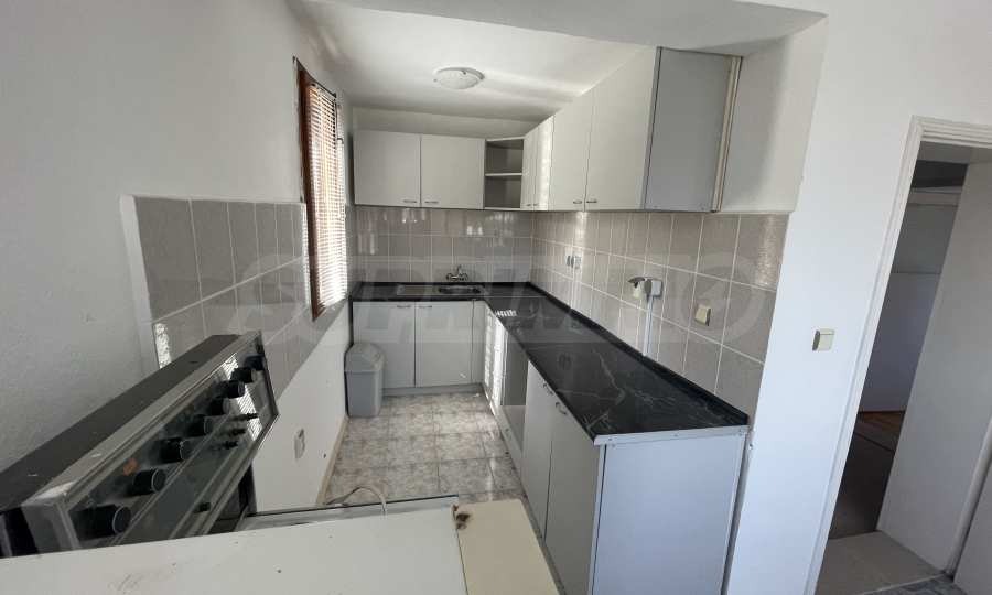 Първи етаж - всекидневна кухня открит план, разположена по средата, 2 спални от всяка страна на дневната, баня, тоалетна и малък килер.