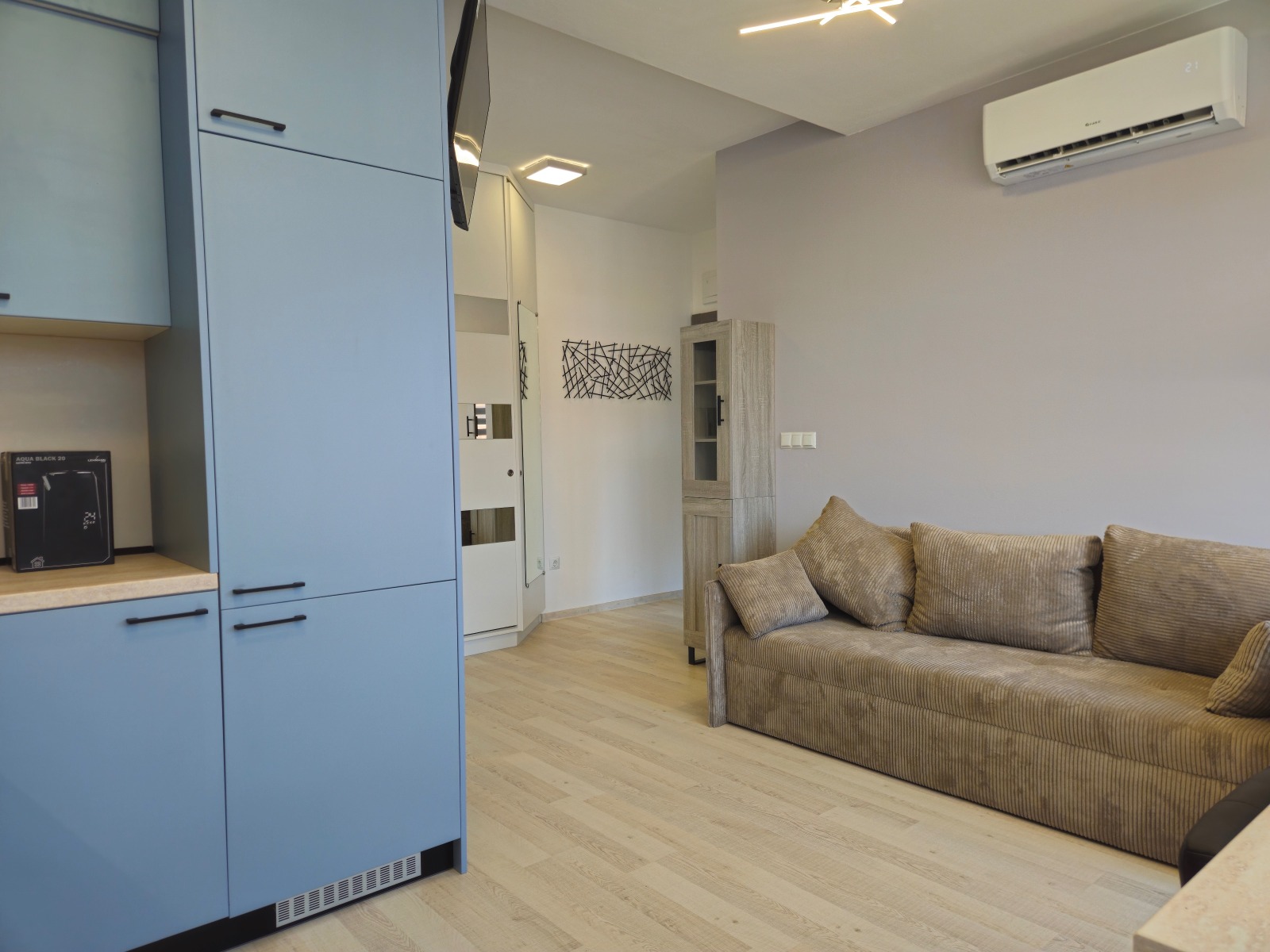 ИМОПОЛИ отдава напълно нов двустаен апартамент в района близо до Св.св Константин и Елена. Сградата разполага с хранителен магазин и е на метри от автобусна спирка. Към апартамента има и паркомясто във вътрешен двор. Разпределението на имота е: антре, спалня, баня с тоалет, дневна с кухненска част.