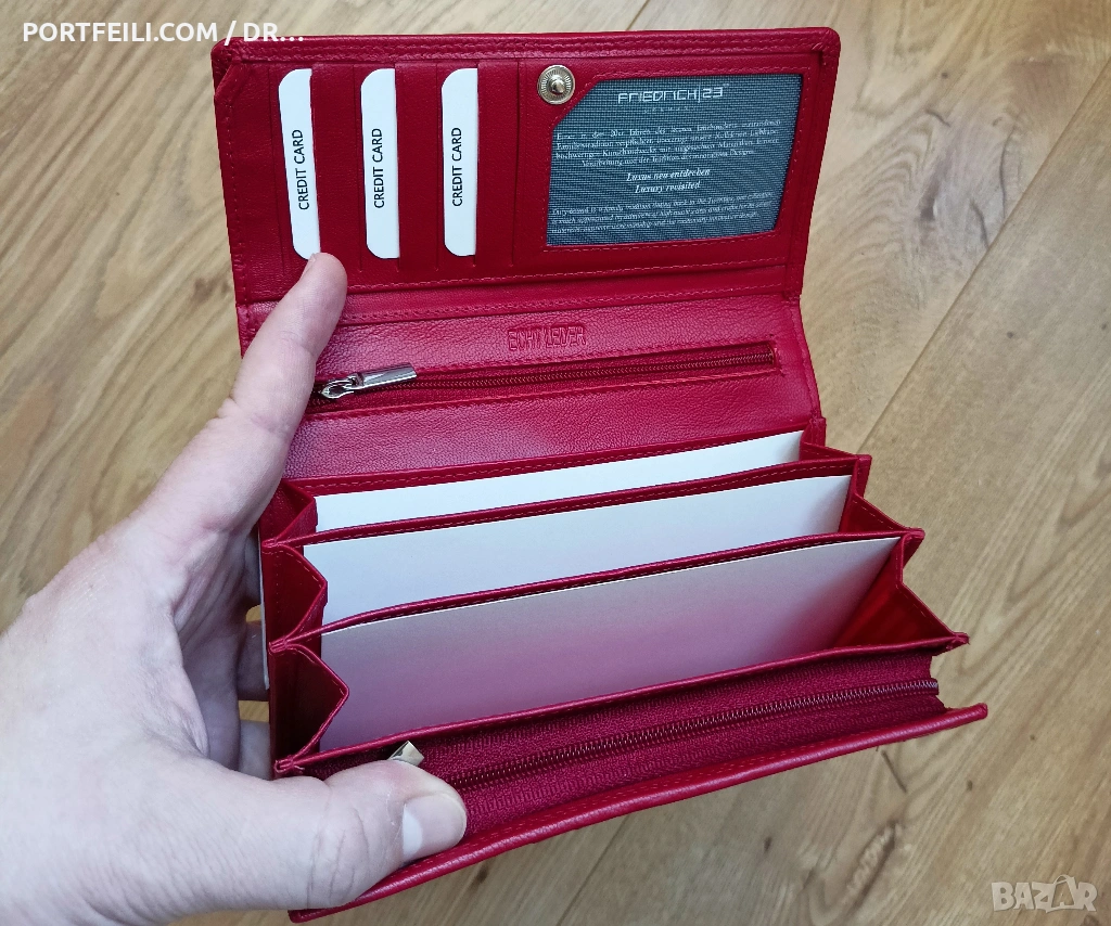 Представямe ви един от най-купуваните, най-качествените и най-красивите ни артикули. Това е дамското портмоне Mandala на немската фирма Friedrich 23. Изключително качествена изработка, която (лично сме свидетели) устоява с години.