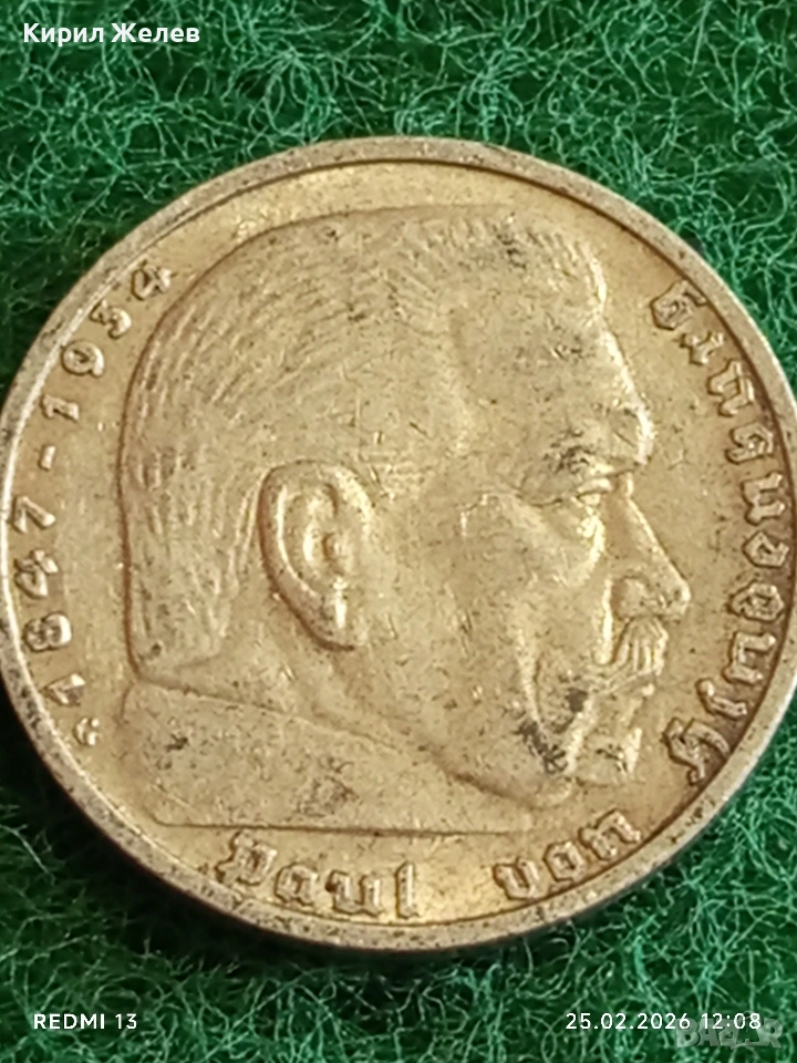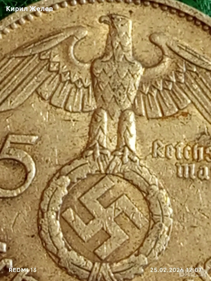 Сребърна монета 5 райхсмарки 1937г. Германия Трети Райх с Свастика за КОЛЕКЦИОНЕРИ 26432 → Обява 53616472