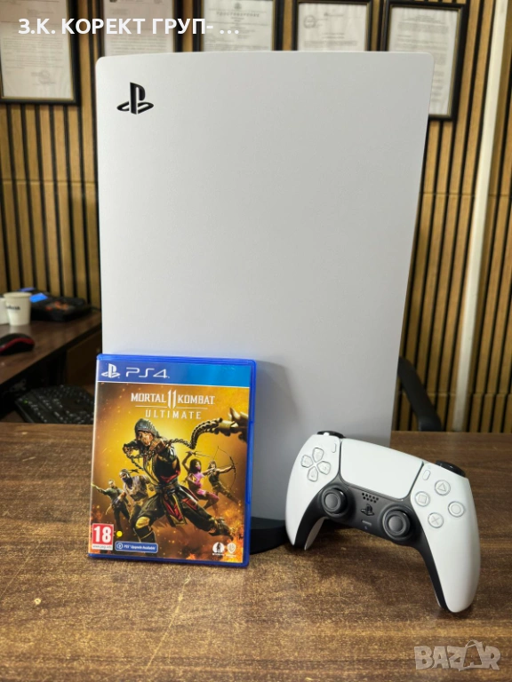 Комплета включва конзола, всички оригиналти кабели ( HDMI кебел, Type-C кабел и захраващ кабел ), 1бр джойстик и 1бр игра ( Mortal Kombat 11 Ultimate ).
