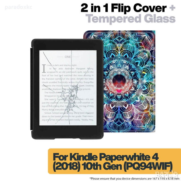 Калъф + протектор за Kindle Paperwhite 2018 (10th Gen) - Mandala Galaxy → Обява 53616545