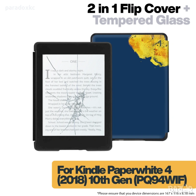 Kомплект калъф + фолио протектор или калъф + стъклен протектор за Kindle Paperwhite 2018.