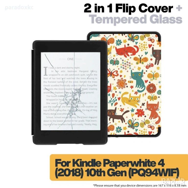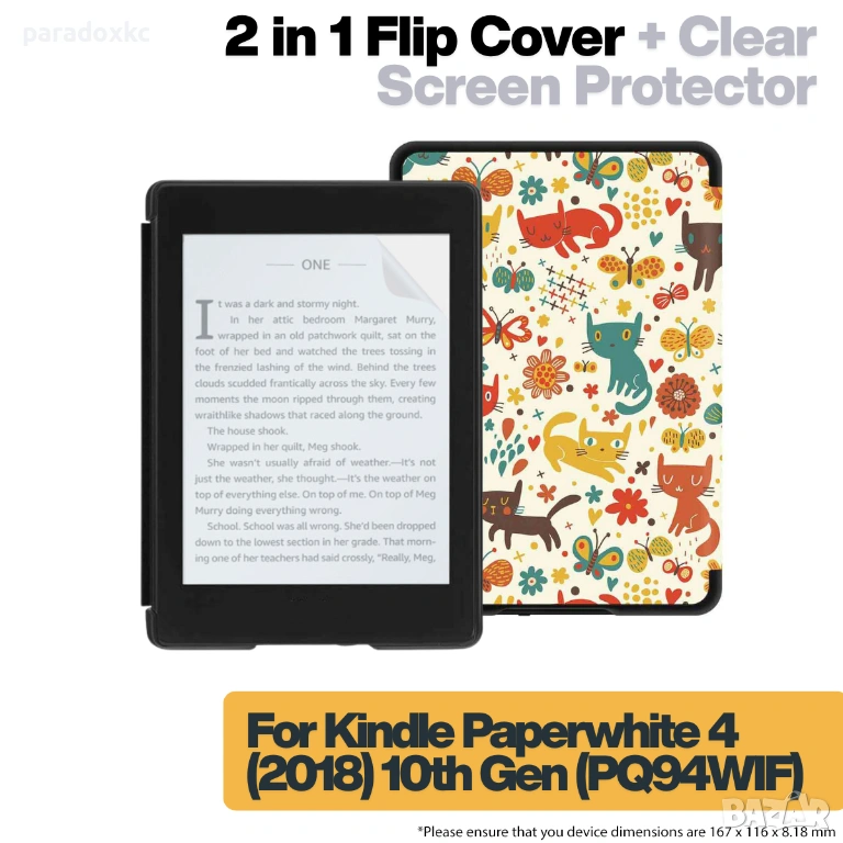 Kомплект калъф + фолио протектор или калъф + стъклен протектор за Kindle Paperwhite 2018.