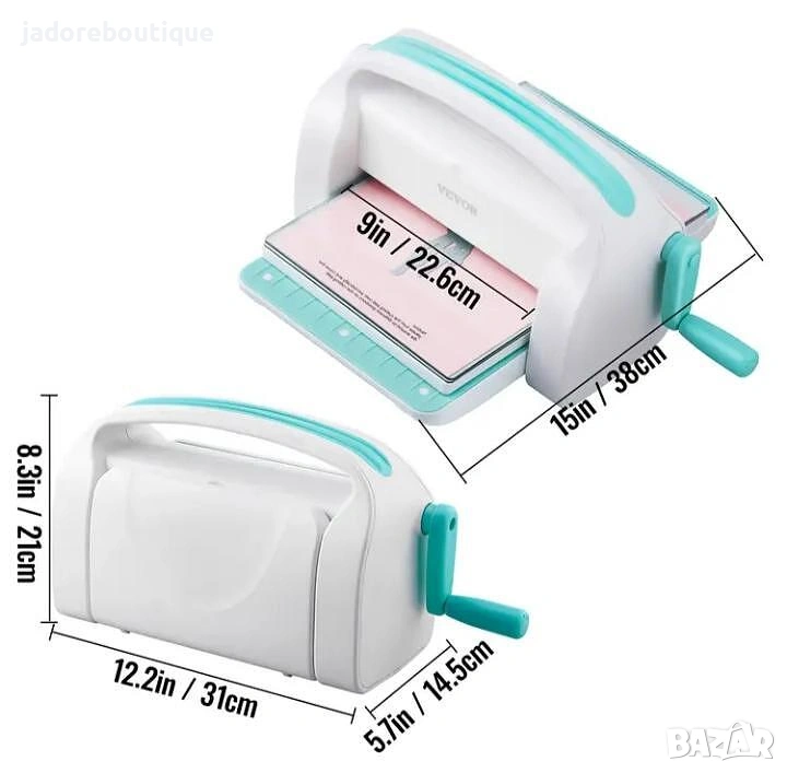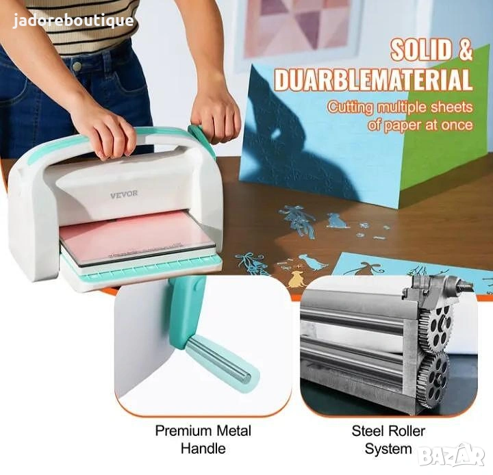 В опаковката има всичко необходимо за да започнете да създавате впечатляващи картички, албуми, хартиени цветя, и много други декорации. Може да работи с различни материали като хартия, картон, фолио, тънка кожа, филц, и други. (За изрязването на някои материали ще се нуждаете от специални щанци)