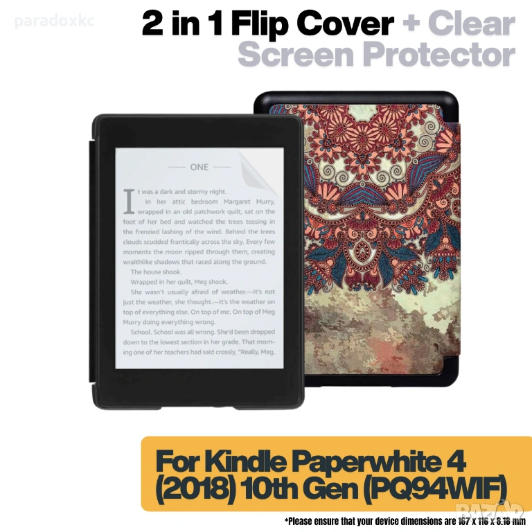Kомплект калъф + фолио протектор или калъф + стъклен протектор за Kindle Paperwhite 2018.