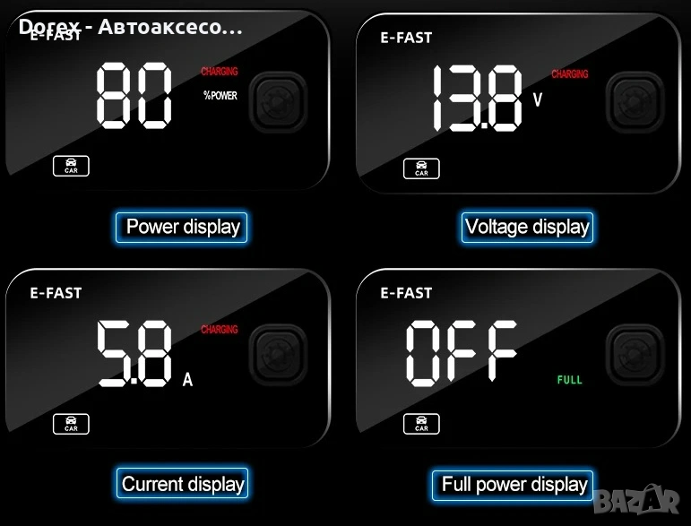 Моделът разполага с LCD дисплей за удобен контрол на процеса на зареждане и автоматичен режим на превключване за оптимална работа. Вградените защити предпазват от прегряване, презареждане, късо съединение и обратна полярност.