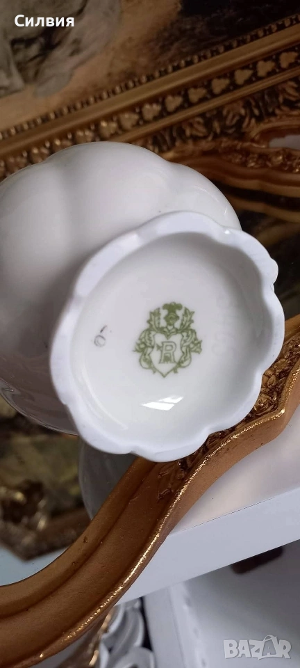 ❗️Има изтриване на златния кант🌹..•´¨) ¸.•¨) 🌱... (¸.•¨¯`*•.🍃🌹🍃 Производител Roschützer Porzellanfabrik Unger & Schilde. (по-късно VEB Porzellanwerk Roschütz след национализация през 1953 г.). Местоположение: Рошюц (Roschütz), Тюрингия, Германия. Период на употреба на марката: 1906 – 1968 г.. История: Фабриката е основана през 1811 г., но е закупена от Бернхард Шилде и Карл Унгер през 1882 г., които я преименуват. След Втората световна война компанията е национализирана в Източна Германия и в крайна сметка става част от комбината Kahla през 1968 г., преди да бъде затворена през 1991 г..