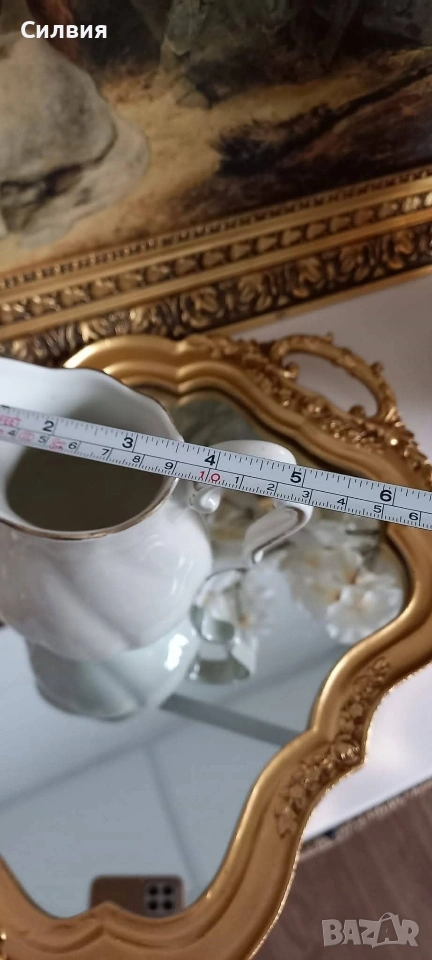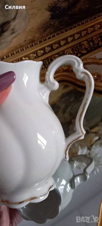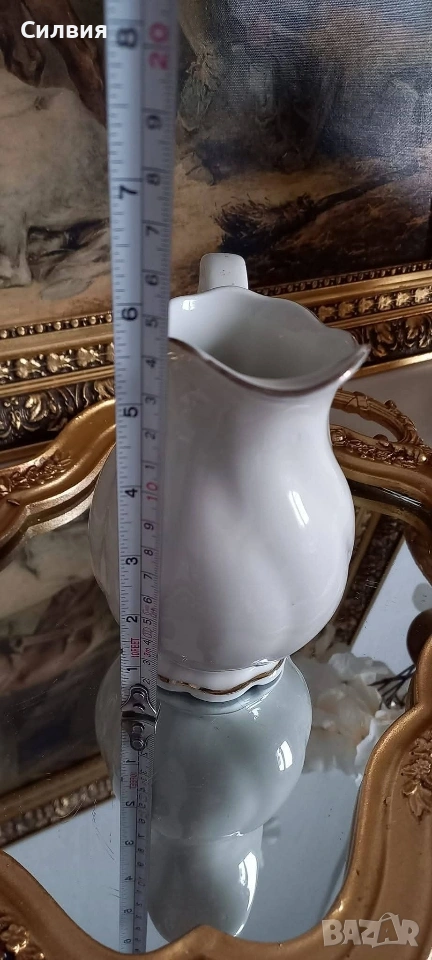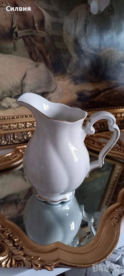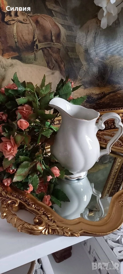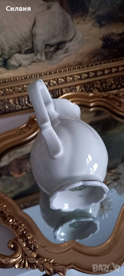 Стара каничка за мляко, сметана а защо не и като ваза. Кремав цвят на порцелана.