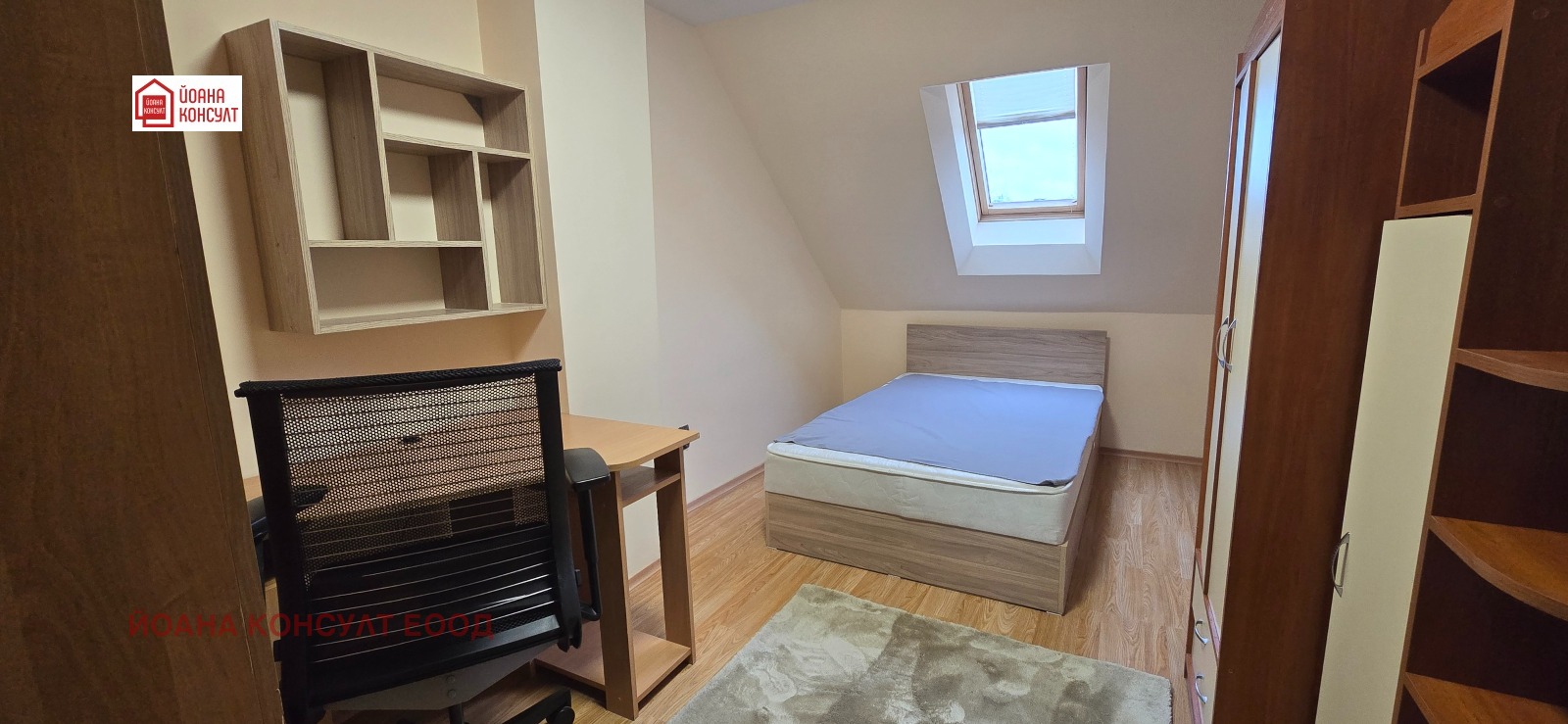 Агенция 'Йоана-Консулт' предлага стая от апартамент в съжителство с момиче от Медицински университет. Жилището се намира в близост до центъра на града, на 500 м от МУ. Жилището е реновирано и напълно обзаведено. Стаята разполага с легло, гардероб, бюро със стол. Стаята е топла, уютна и слънчева, поради южното си изложение. За общо ползване са баня с тоалетна, всекидневна, тераса. Търси се момиче, което да е студентка в МУ, непушач.