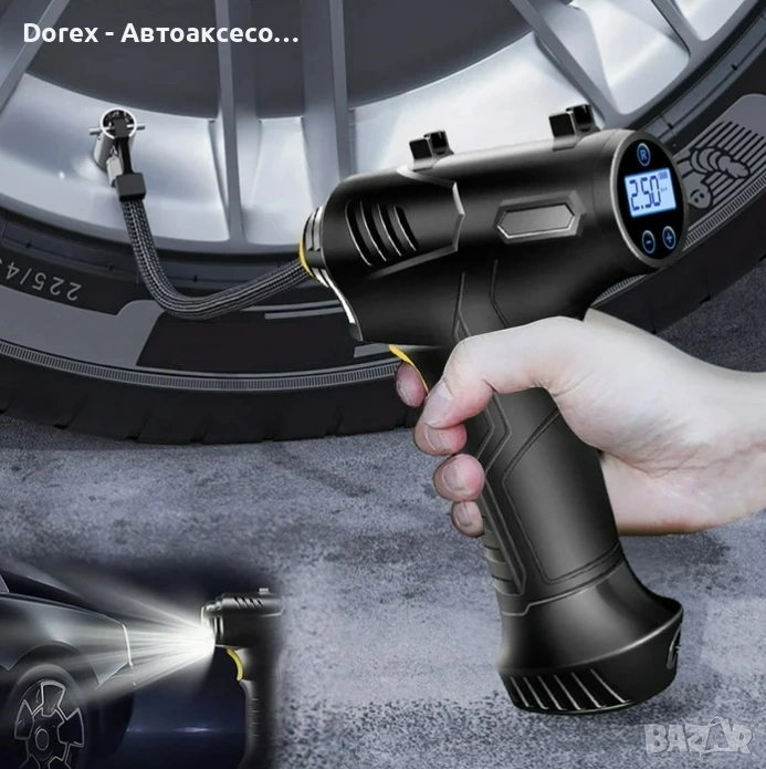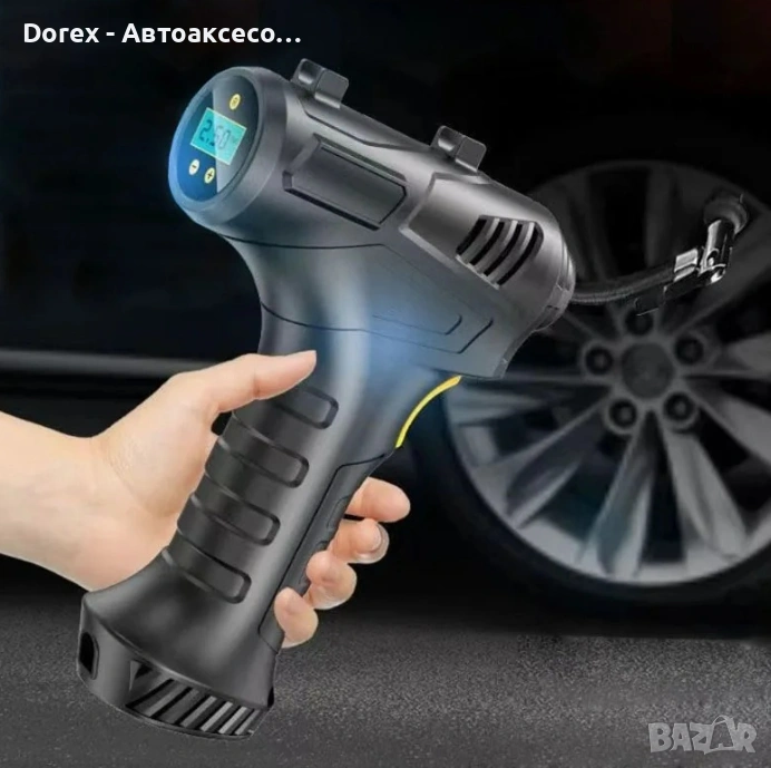 Висококачественият презареждаем преносим компресор с LED дисплей е удобен и надежден помощник за помпене на гуми, топки, балони и други надуваеми изделия. Компактният дизайн го прави лесен за пренасяне и използване както в автомобила, така и на открито.