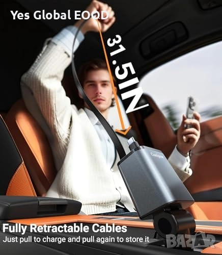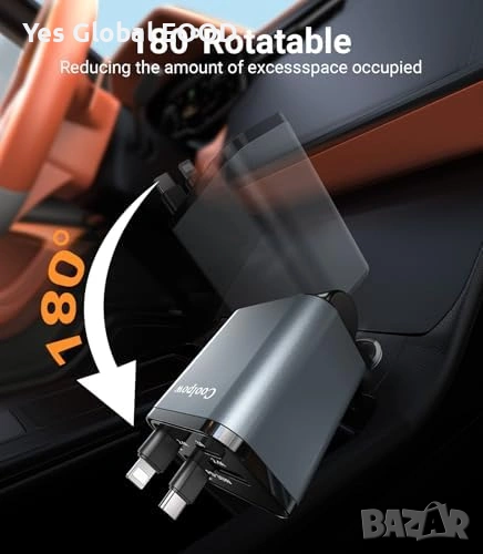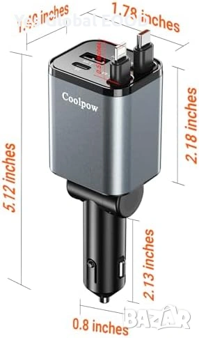 4в1 автомобилно зарядно Type-C + 2 USB