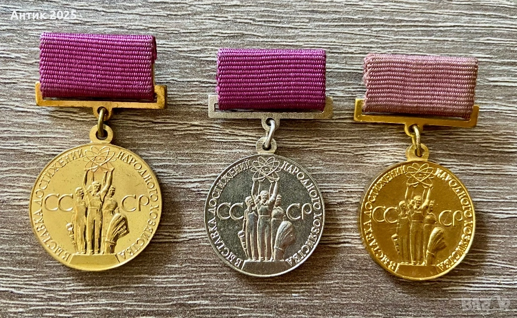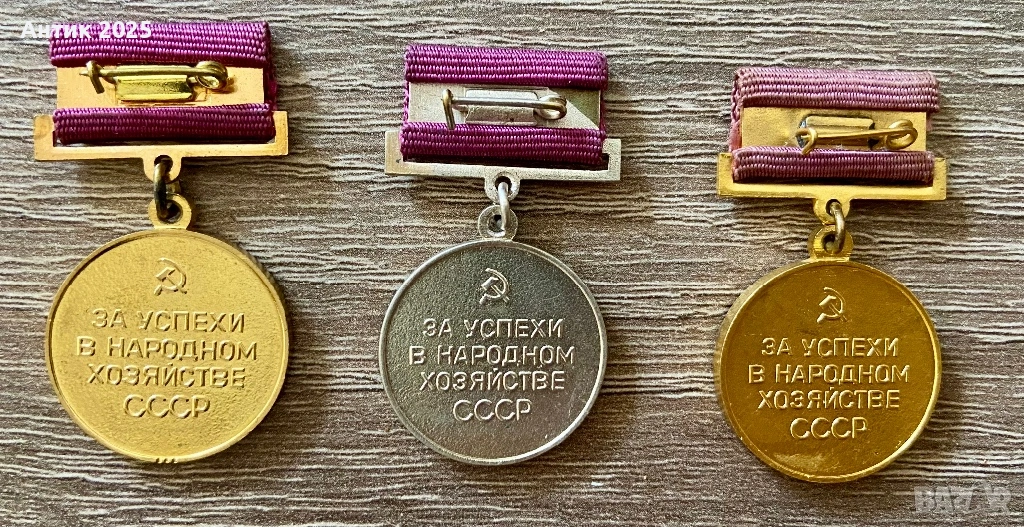 Винтидж медали на СССР „За постижения в народното стопанство на СССР“ — комплект от 3 бр., месинг
