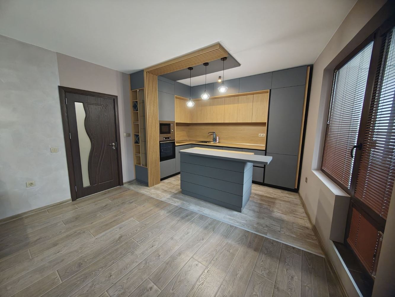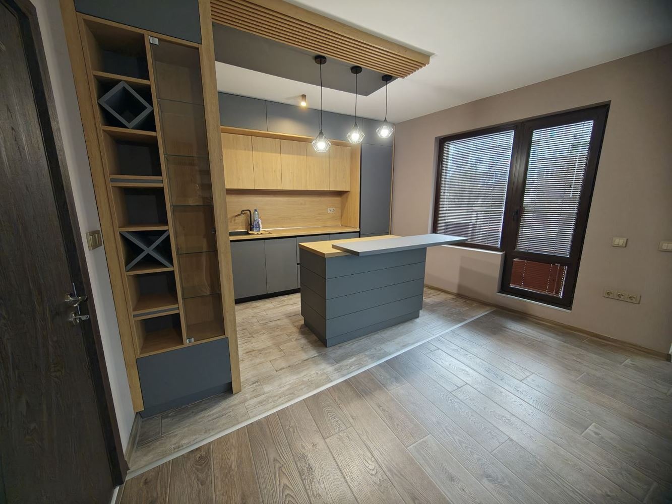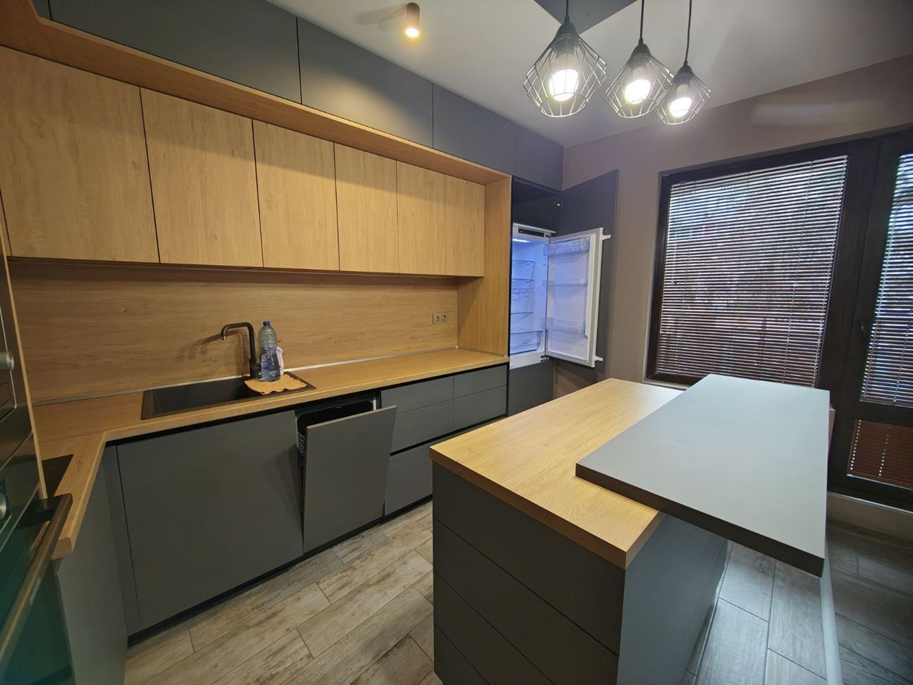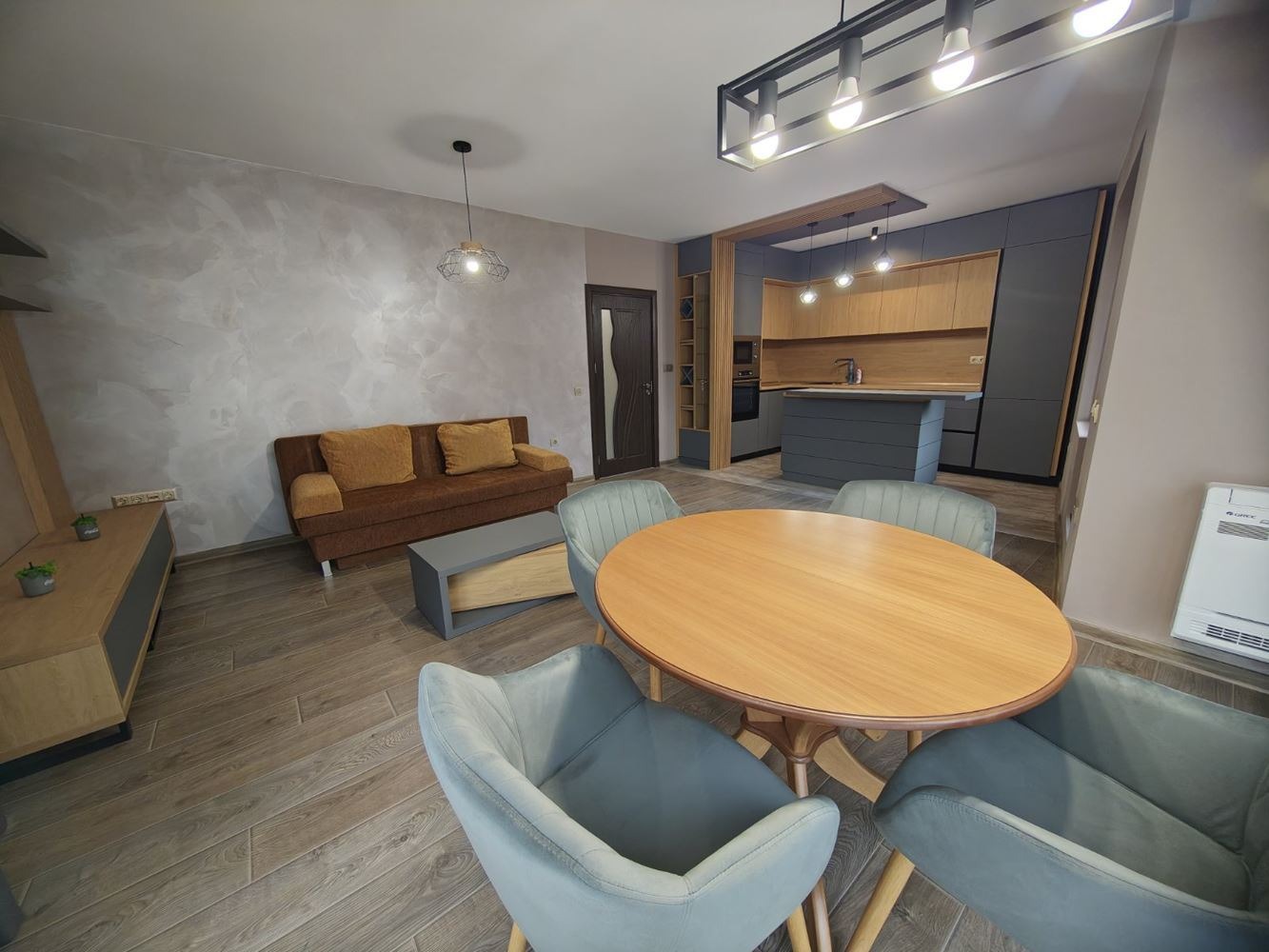 РАЗПРЕДЕЛЕНИЕ: Входно антре, просторна всекидневна с кухня и трапезария, две спални, баня с тоалетна, мокро помещение с тоалетна и две тераси. Предстои обзавеждане на втората спалня според изискванията на наемателите!