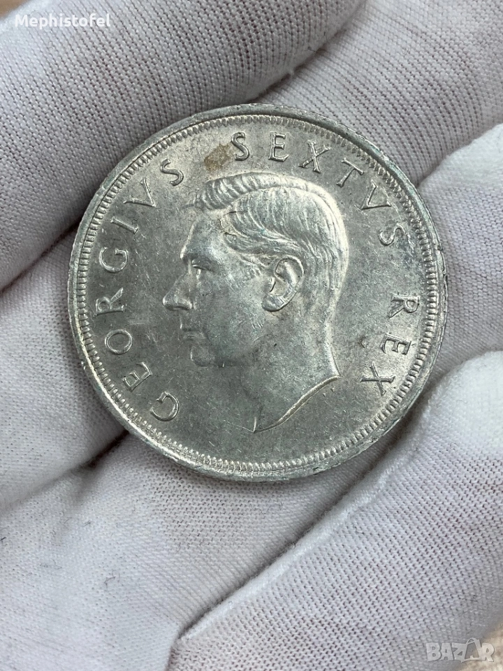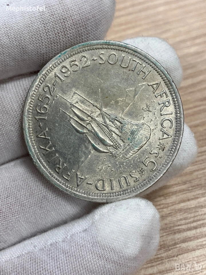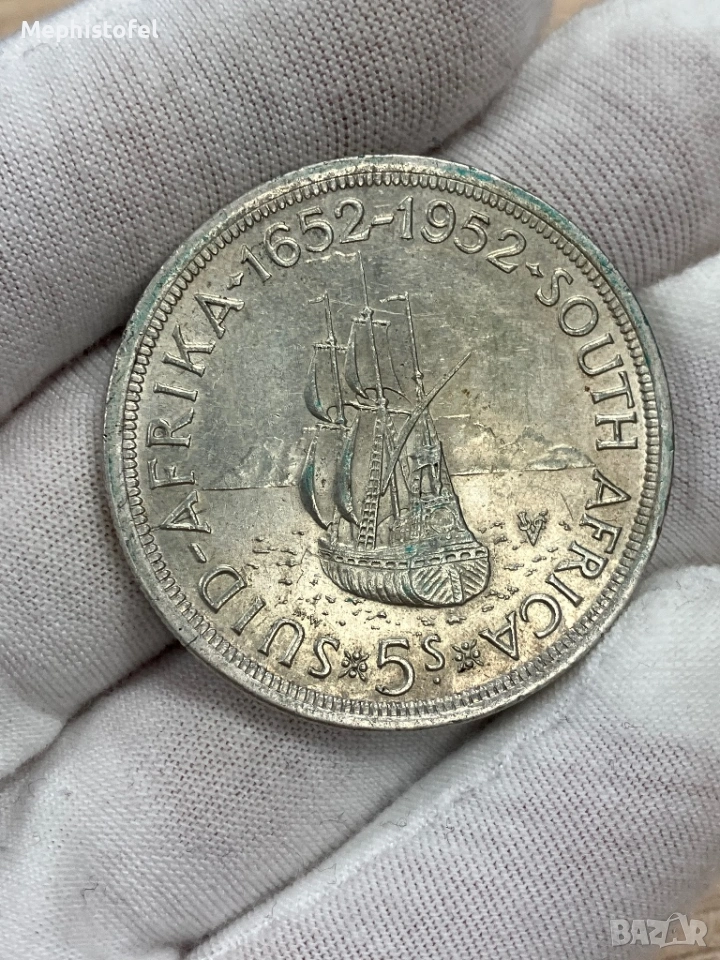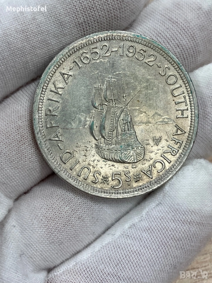 5 шилинга 1952 г, Южна Африка / Британска империя - голяма сребърна монета