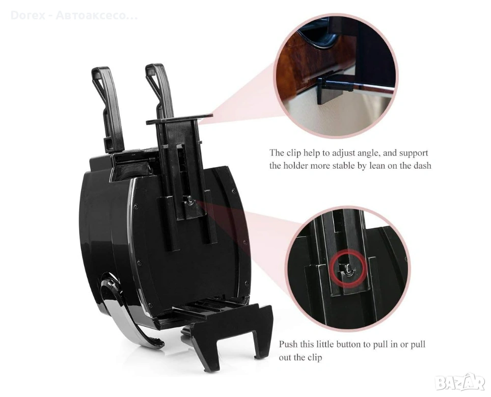 Монтира се лесно към въздуховодите на автомобила чрез стабилни скоби и осигурява отлична устойчивост дори при движение. Компактният дизайн не заема излишно място и се вписва добре във всеки интериор.