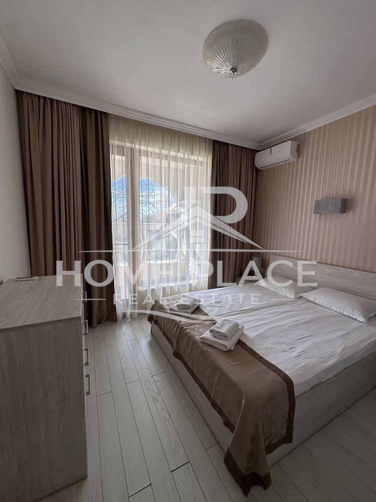 Апартаментът се отдава напълно обзаведен и оборудван с висок клас мебели и електроуреди, готов за незабавно нанасяне. Подходящ за наематели, които търсят стил, пространство и истинско морско усещане в ежедневието си.