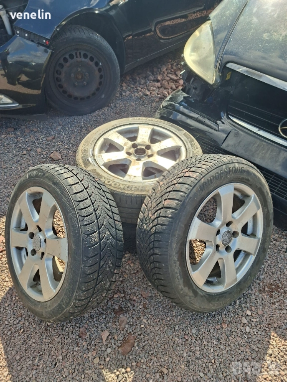 Продавам джанти 16ки 5 по 112 центр. 57.1 ЕТ 45 със зимни гуми 205 60 16