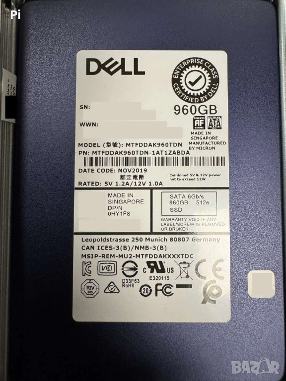 Micron 5200 MAX, Dell 960GB SATA 2.5-инчов SSD диск от корпоративен клас → Обява 53617428