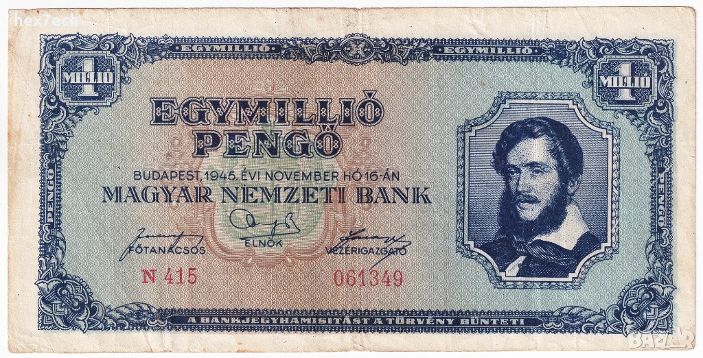 ❤️ ⭐ Унгария 1945 1000000 пенго ⭐ ❤️, снимка 1 - Нумизматика и бонистика - 53617465 ❤️ ⭐ Унгария 1945 1000000 пенго ⭐ ❤️, снимка 2 - Нумизматика и бонистика - 53617465 ❤️ ⭐ Унгария 1945 1000000 пенго ⭐ ❤️, снимка 3 - Нумизматика и бонистика - 53617465 1/3