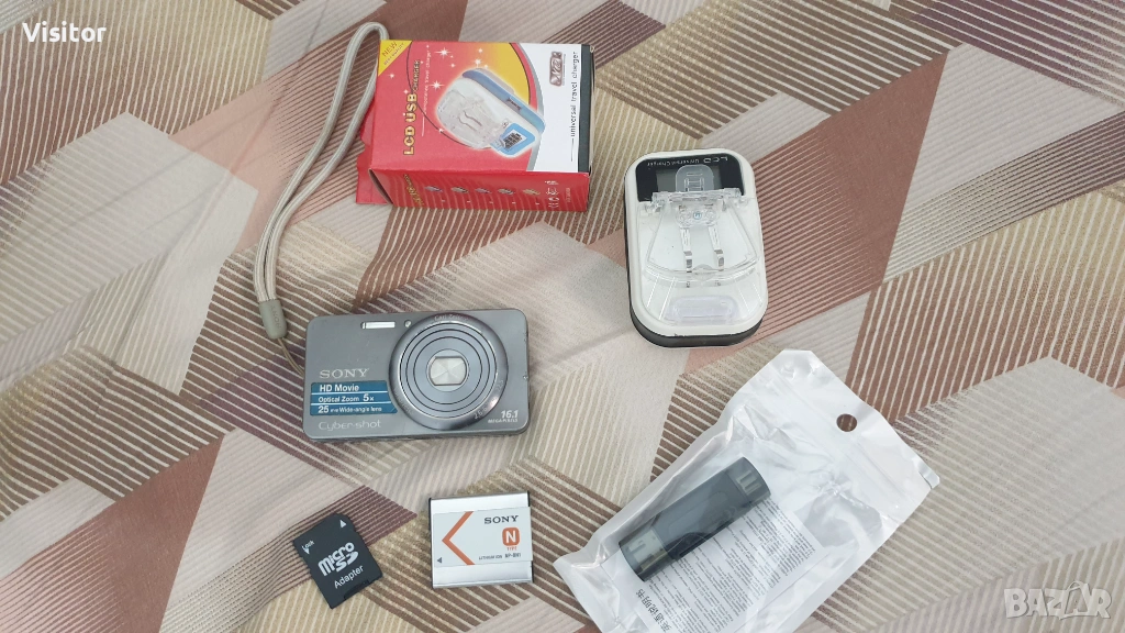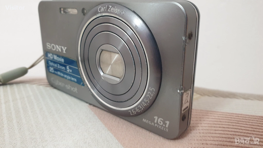 Моля,прочетете цялата обява и разгледайте снимките правени с този фотоапарат - така ще добиете минимална представа за предлаганото изделие.Предлагам на Вашето внимание този пълен комплект,компактен и с лесно боравене с менюто,което е на БЪЛГАРСКИ,английски и други езици. Фотоапарата е от серията W на марката със сив цвят. Бърз автофокус съчетан с 16.1 МрХ матрица и светлосилен обектив с фокусно разстояние 25-125 mm на Carl Zeiss и 5x оптичен зуум прави невероятни снимки с наситена цветност и нюанси на изображението присъщи на Sony. Светкавицата работи отлично и осигурява направата на качествени снимки и в стайни помещения.Има и възможности за направата на HD 720 видео. Фотоапарата може да прави и панорамни снимки.Към фотоапарата предлагам - оригинална батерия, SD карта ,която е с капацитет за записване на 542 снимки,нов четец за прехвърляне на данните към компютър или телефон от картата памет,универсално зарядно устройство,което има LED дисплей показващ началото и края на заряда на батерията,връвка за носене на фотоапарата.Забележка - понякога фотоапарата не разпознава батерията,но при последващо изключване и включване всичко е нормално.Възможно е да е проблем с батерията - може да се пробва с друга батерия. Всички описани неща дотук формират и цената на предлаганото изделие.Вижте снимките,които са правени с този фотоапарат на дневна светлина и на светкавица в стая. При интерес от Ваша страна изпращам с ЕКОНТ с опция - преглед и тест!