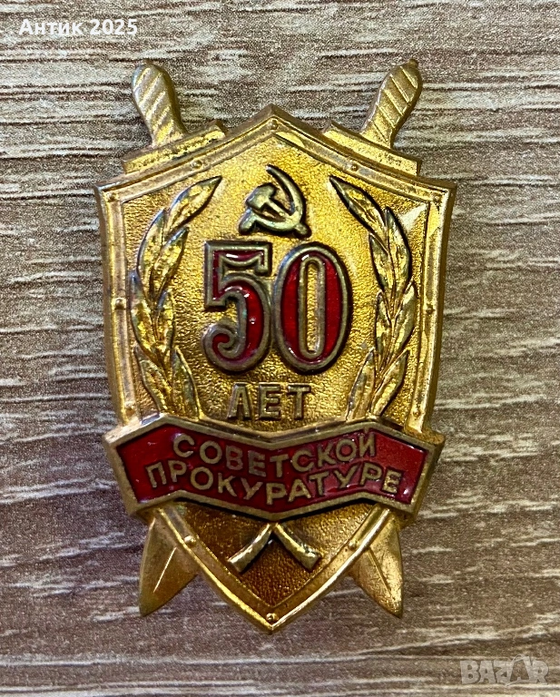 Оригинален юбилеен знак „50 години Съветската прокуратура“, издаден по случай 50-годишнината на прокуратурата на СССР по времето на Съветски съюз.