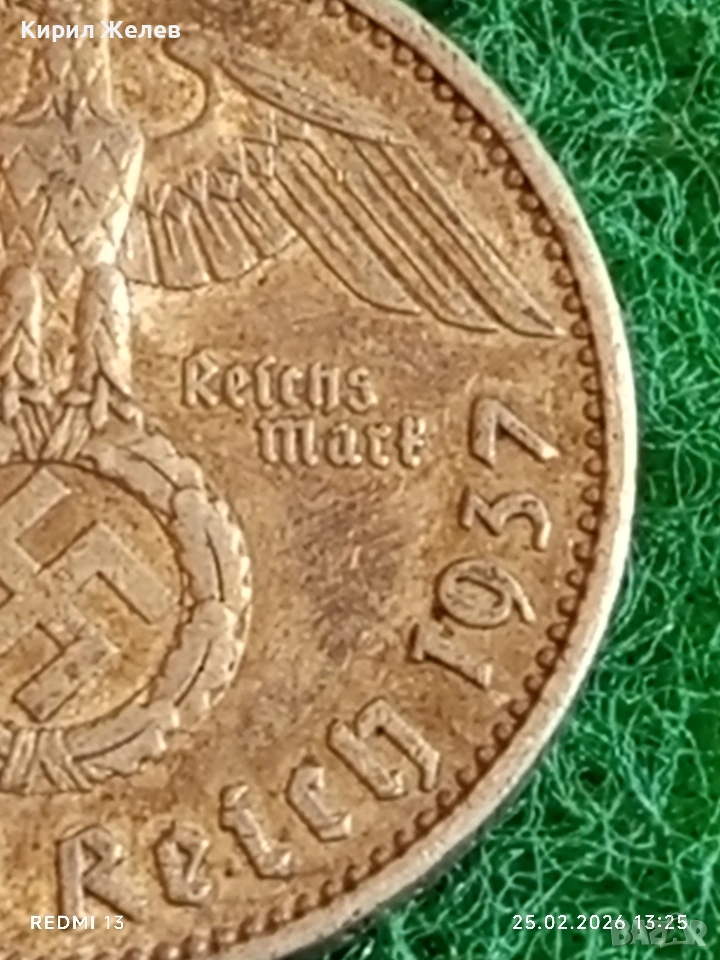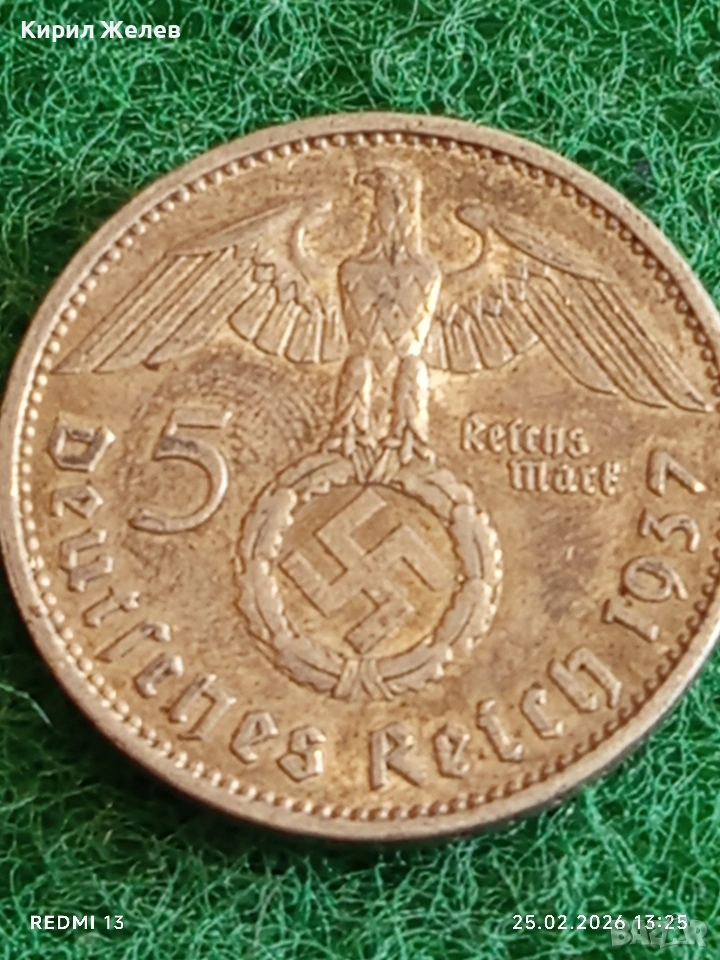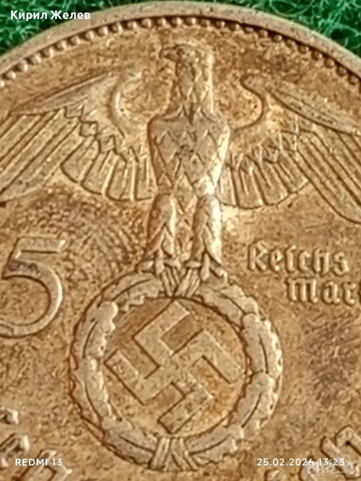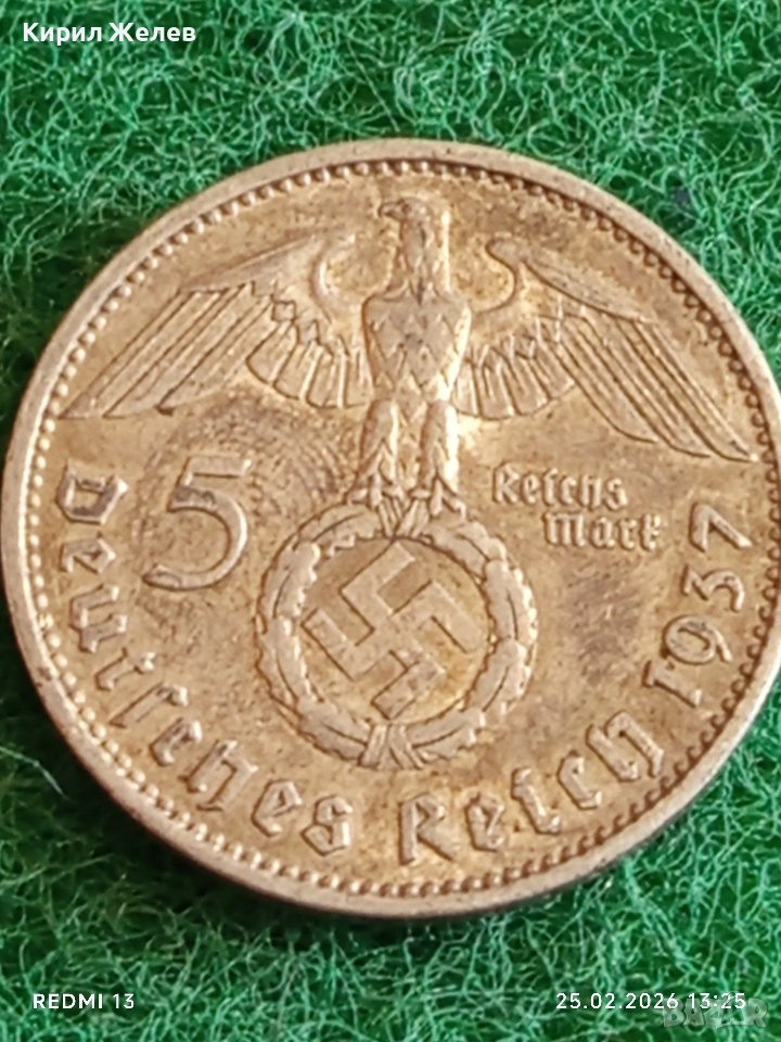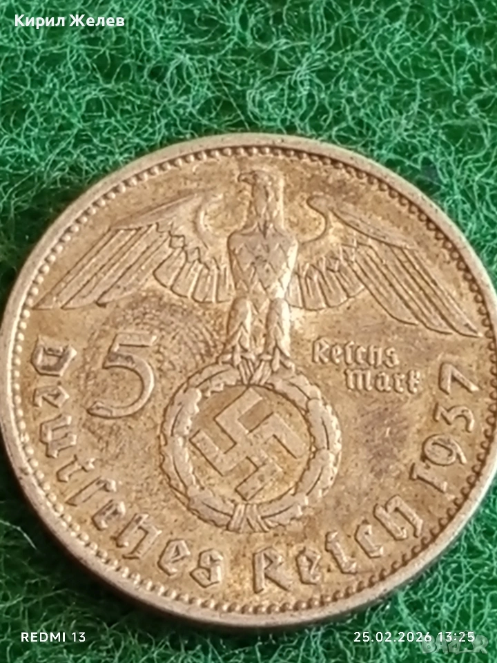 Сребърна монета 5 райхсмарки 1937г. Германия Трети Райх с Свастика за КОЛЕКЦИОНЕРИ 50532 → Обява 53617628