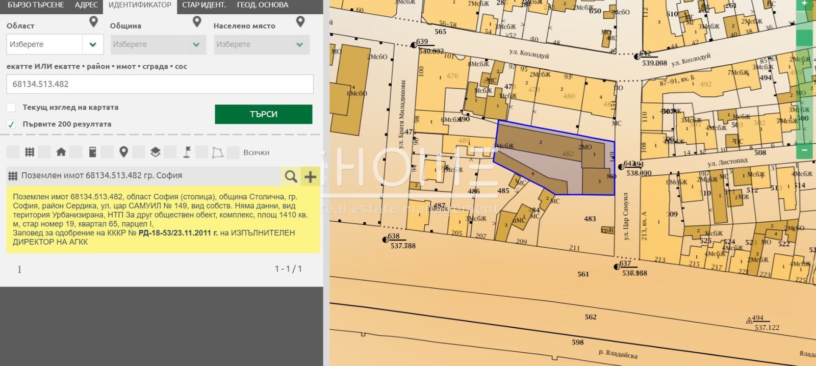 iHOME REAL ESTATE представя на Вашето внимание парцел с идентификационен номер 68134.513.482, с площ от 1432 м2, намиращ се на ул. 'Цар Самуил' до бул. 'Сливница' и е близо до метростанция 'Лъвов мост'. Имотът попада в зона Ц 2, с кинт 3,5-5, има ток и вода. В имота има действащи: офисна сграда на три нива от 150 м2 на етаж и фабрична сграда на два етажа от 700 м2 на етаж, монолитна къща на три етажа, в двора са разположени складови помещения, гаражи и паркоместа. Дворът е с контролиран достъп.