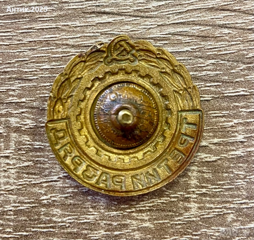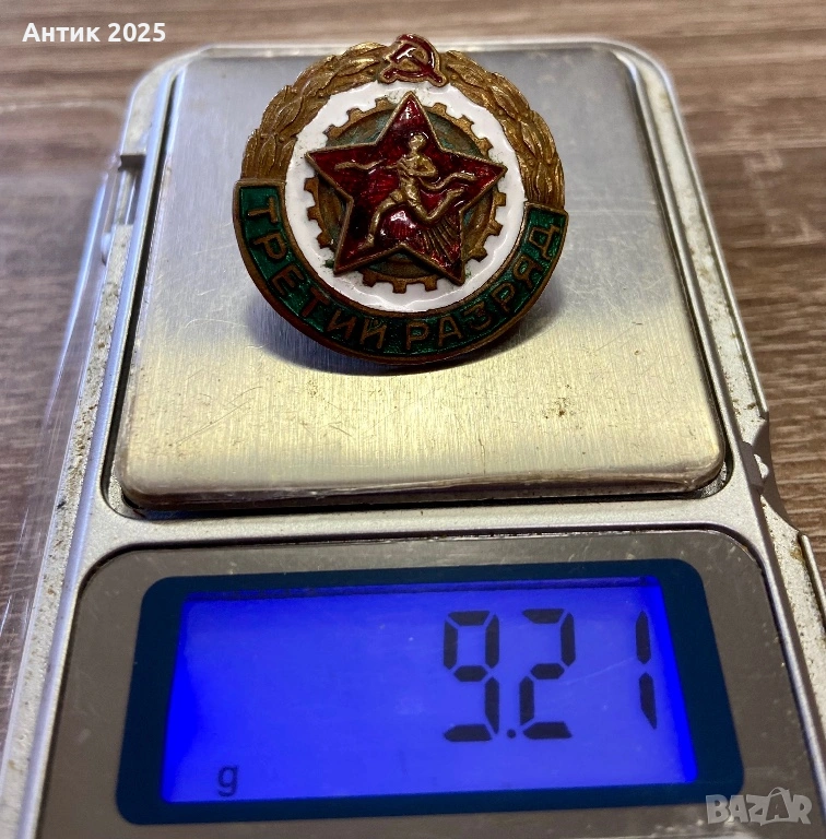 Оригинална съветска значка „Трети разряд“. Изработена от месинг, масивна и тежка — тегло около 9 г.