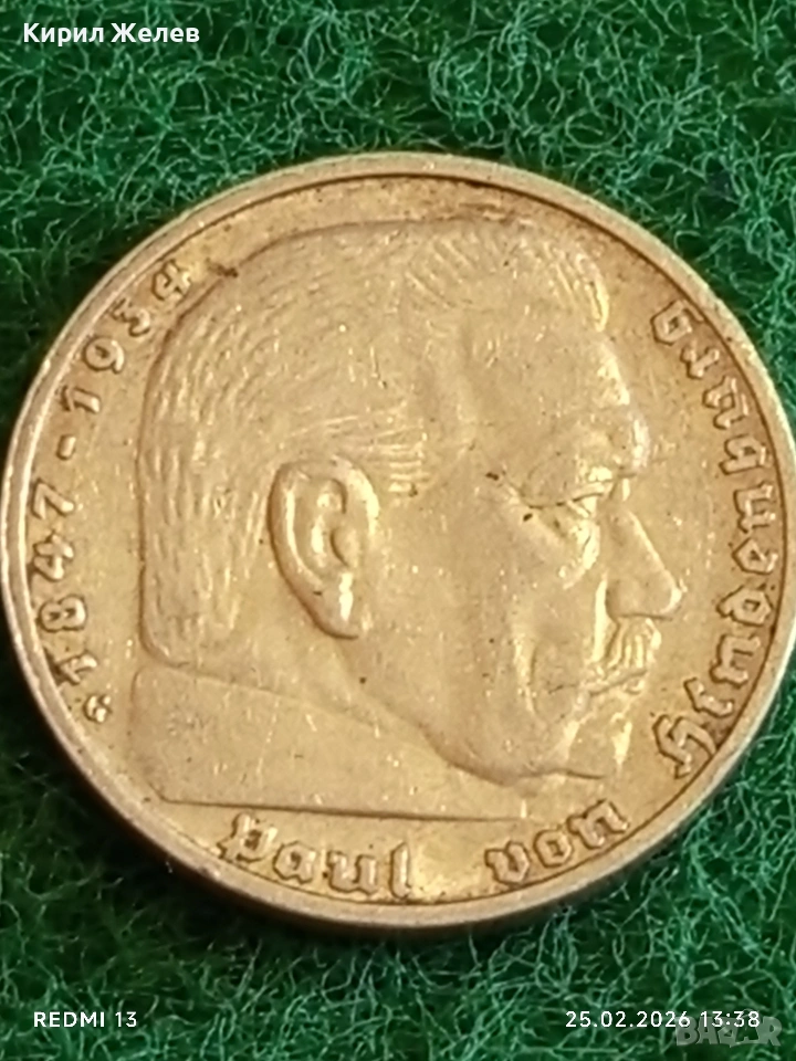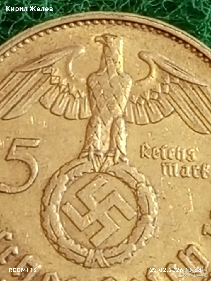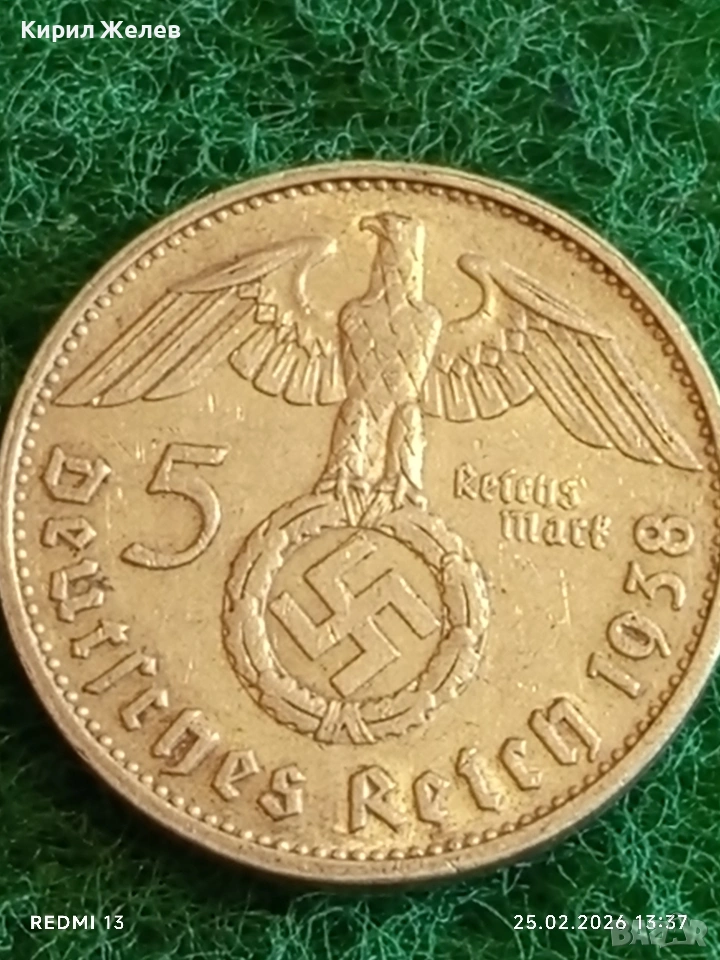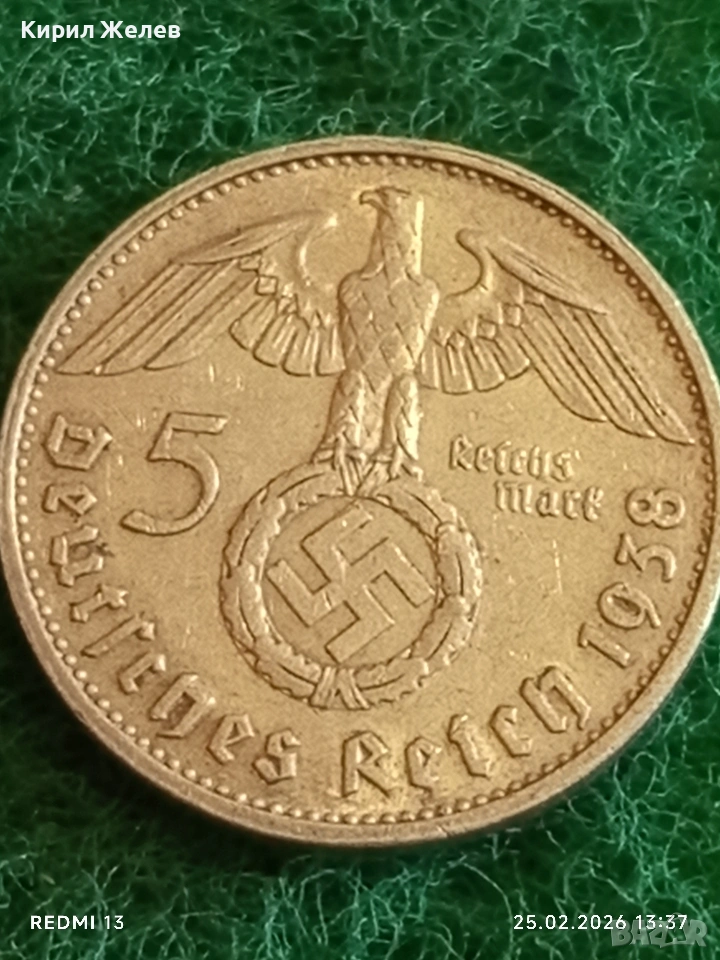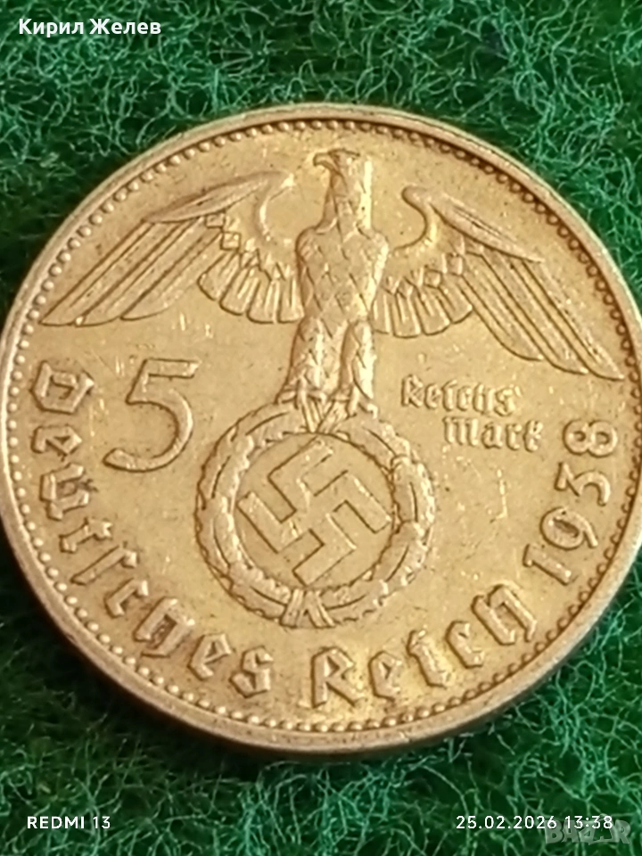Сребърна монета 5 райхсмарки 1938г. Германия Трети Райх с Свастика за КОЛЕКЦИОНЕРИ 51761 → Обява 53617809
