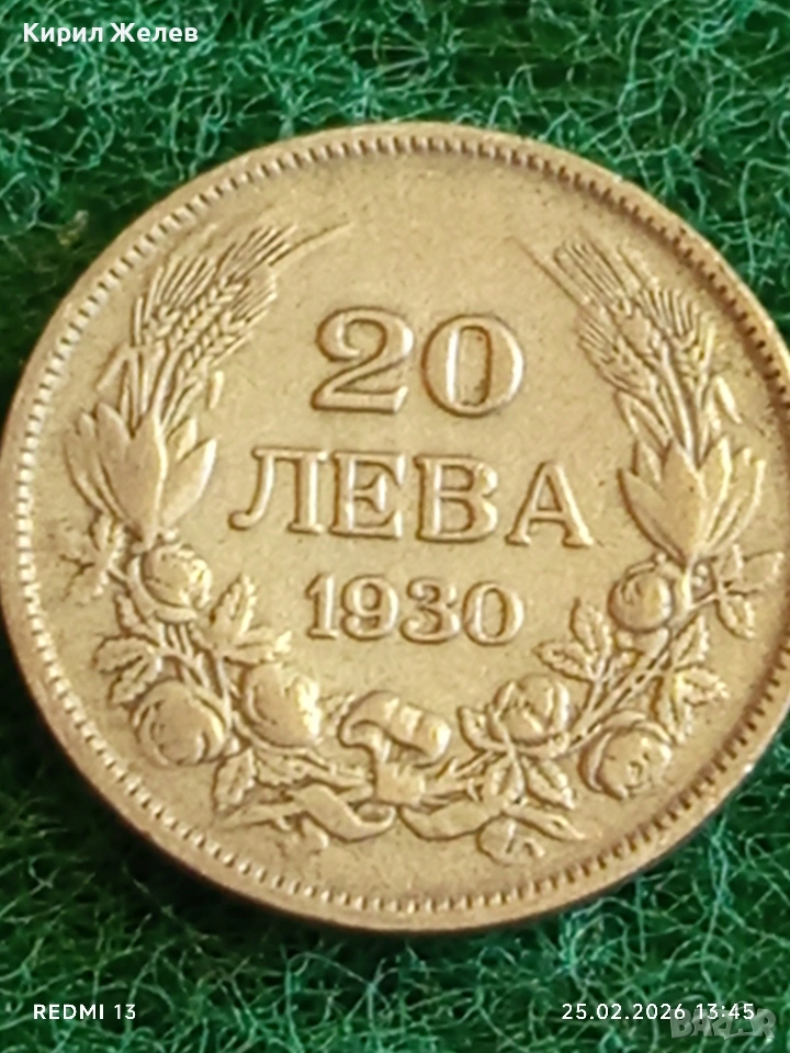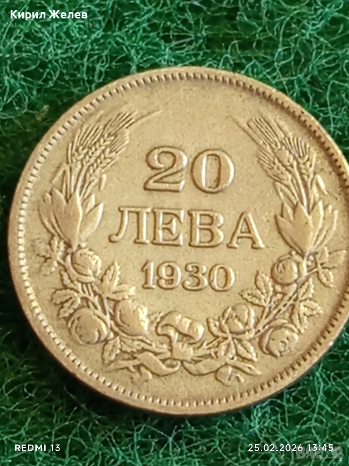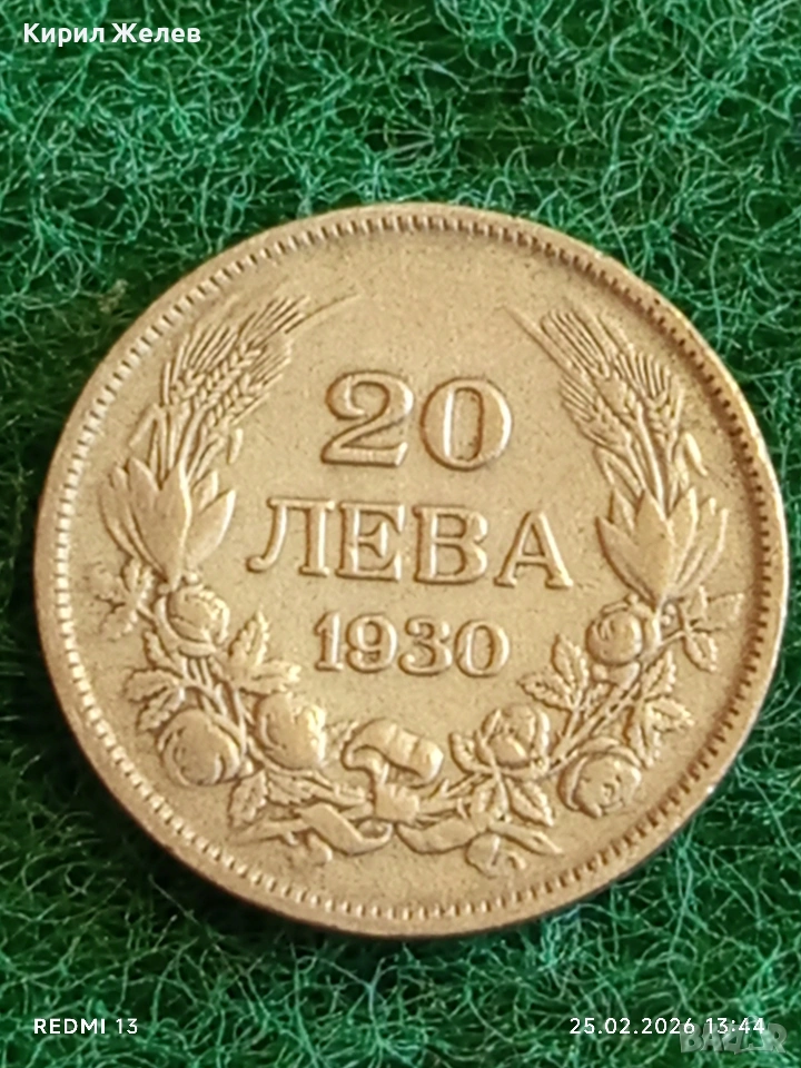 Сребърна монета 20 лева 1930г. Царство България Цар Борис трети за КОЛЕКЦИЯ 30093 → Обява 53617914