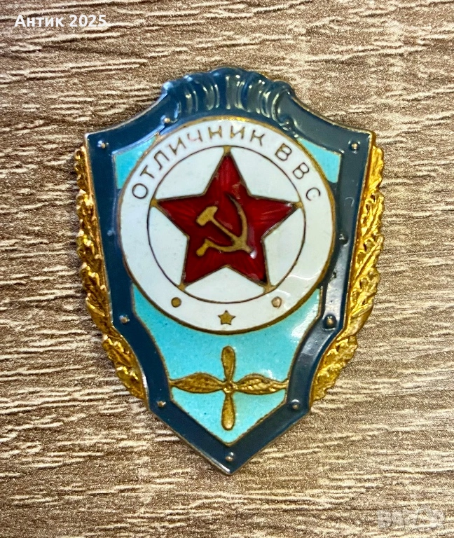 Оригинална винтидж значка от периода на СССР „Отличник Военновъздушни сили“. Наградата е връчвана на военнослужещи от авиацията за отлична служба, високи резултати и професионализъм.