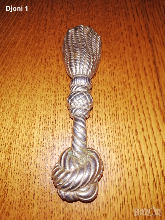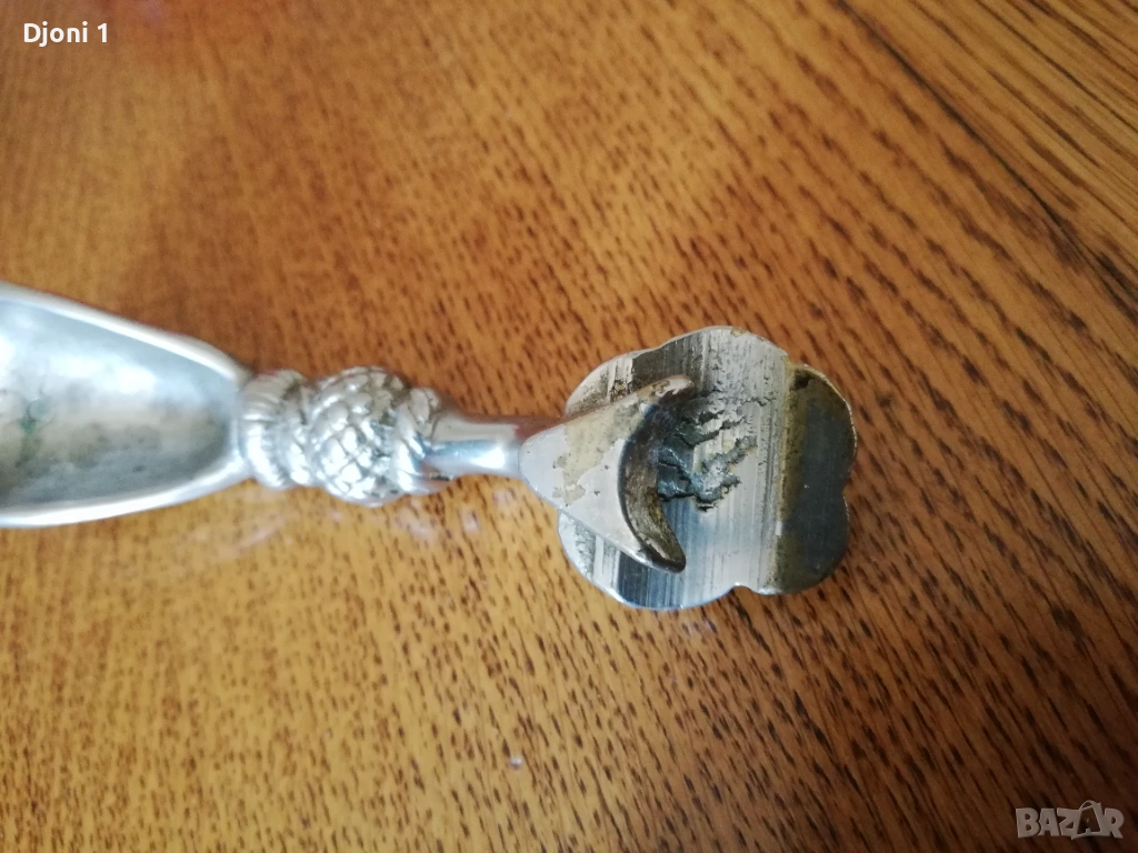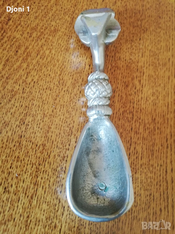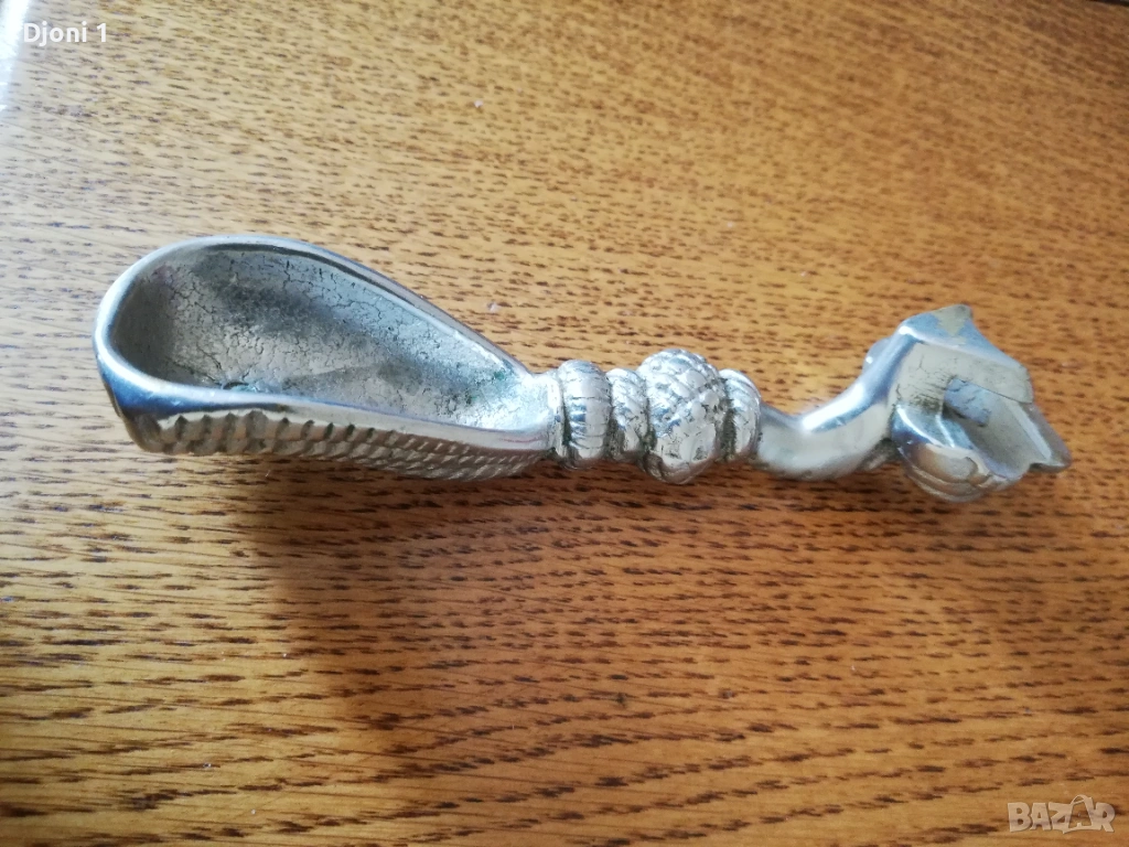 Употреба: Представлява колекционерски или антикварен предмет с практическа функция за отваряне на бутилки и загребване (като лъжица).